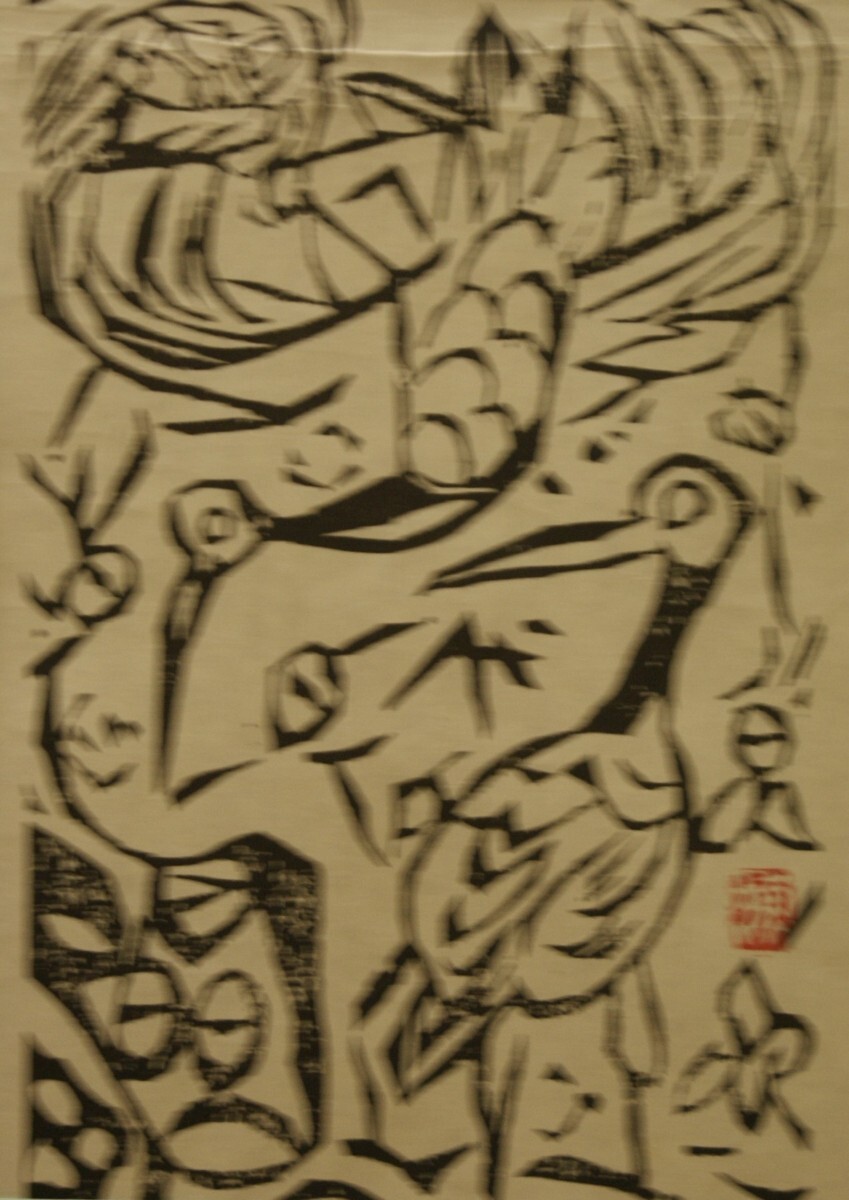 ・作者名: 棟方 志功 ・画題:「鶴の柵」・技法: 木版画(複製)〈341〉(A1-HIO-R4-6-26-15.8)