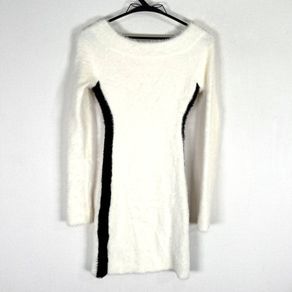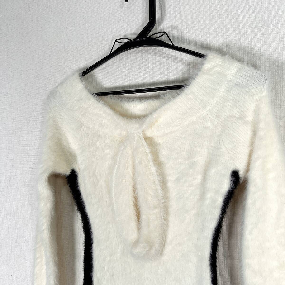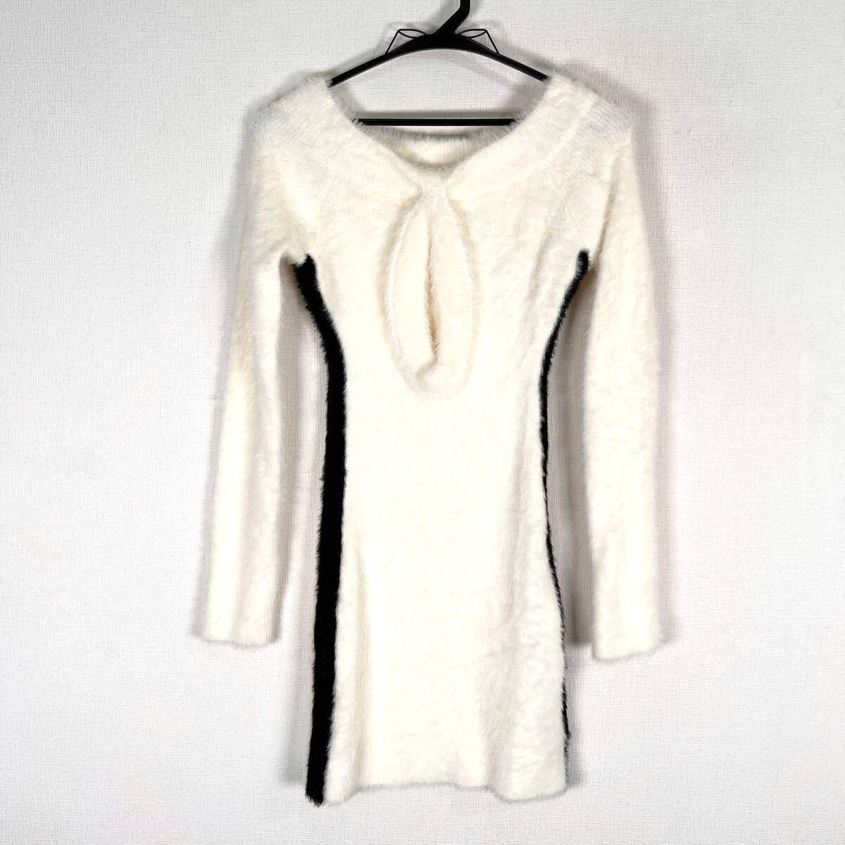 【GYDA】ジェイダ アイボリー 黒 バイカラー 2WAY チョーカーシャギーニットワンピース ニットワンピース レディース フリーサイズ【c037】