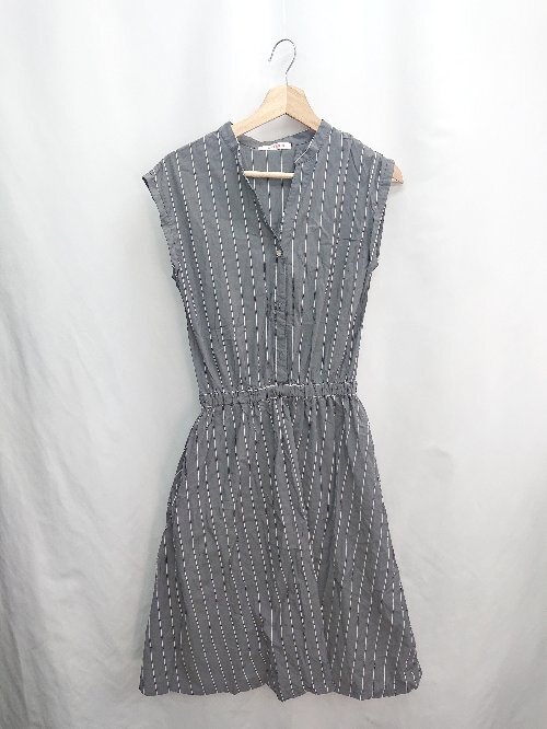 ◇ ⊂ PREFERIR プレフェリール ストライプ柄 ひざ丈 ワンピース サイズ38 グレー レディース E