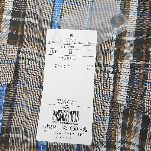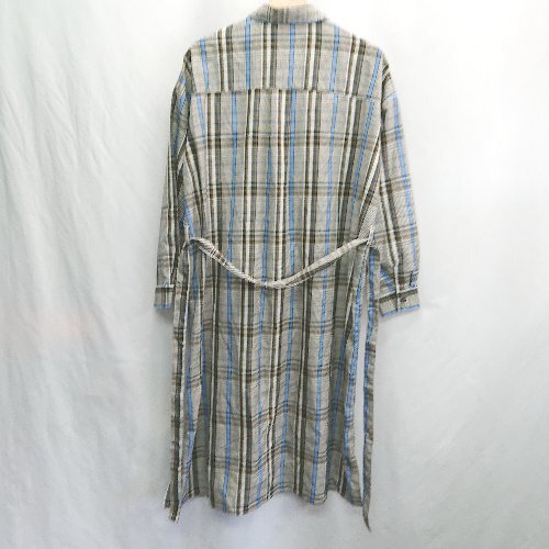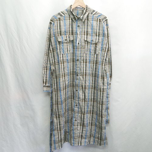 ◇ Θ ◎ ●未使用● THE SHOP TK チェック柄シャツ 長袖 ロング丈 ワンピース サイズM ブルー ブラウン系 レディース E