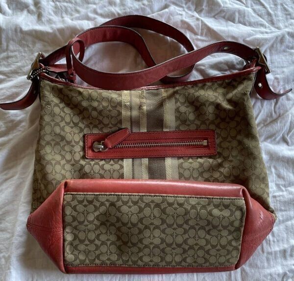 COACH ショルダーバック☆コーチ レザー 切り替え シグネチャー