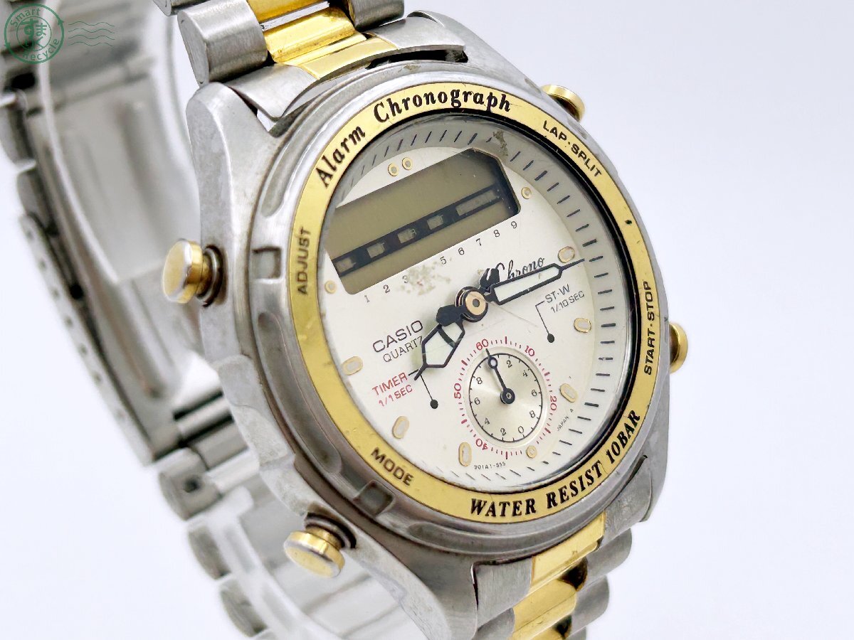♭CASIO カシオ AW-600 クォーツ ラウンド アラームクロノグラフ アナデジ スモセコ コンビカラー メンズ 不動 腕時計 中古 | |||
