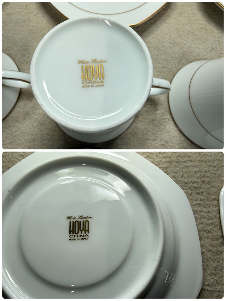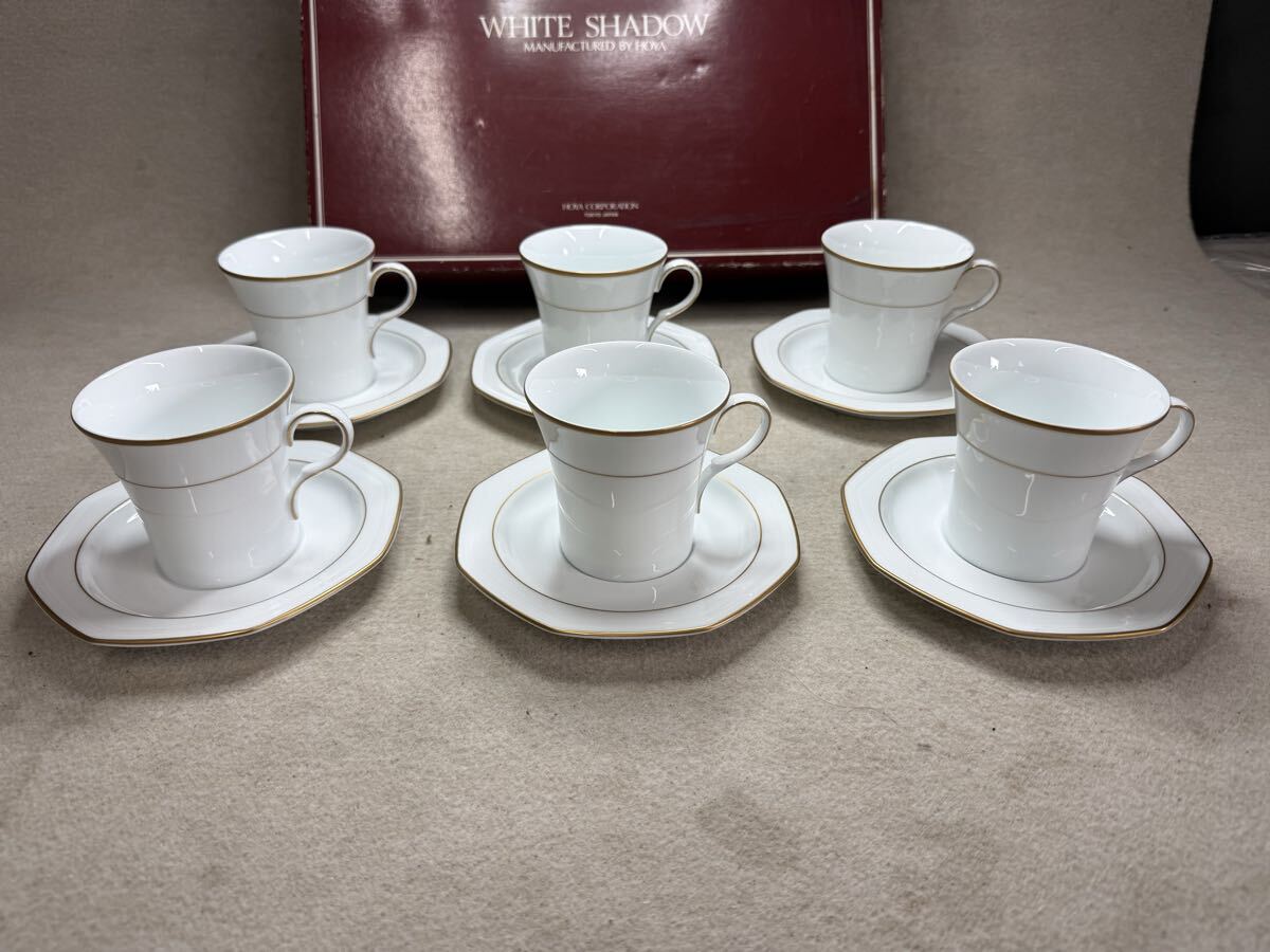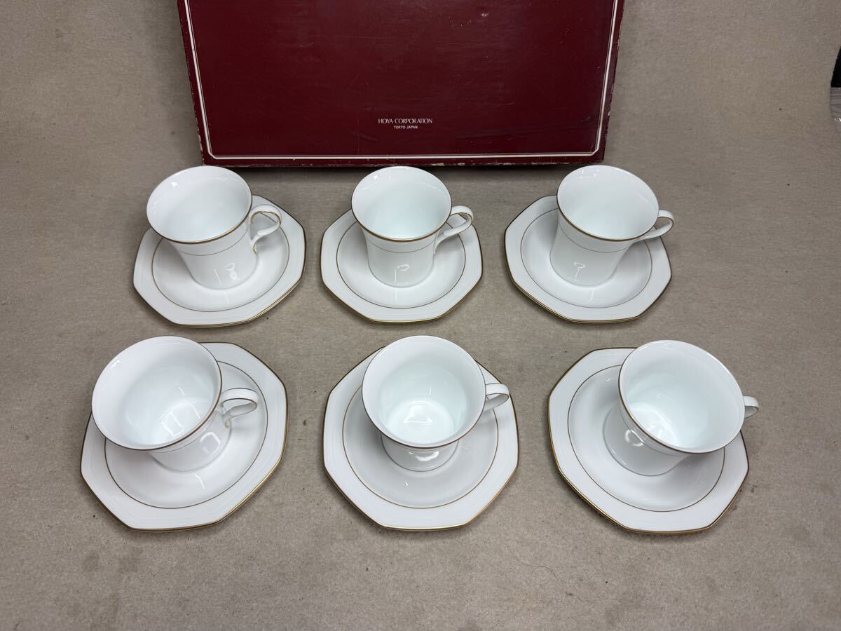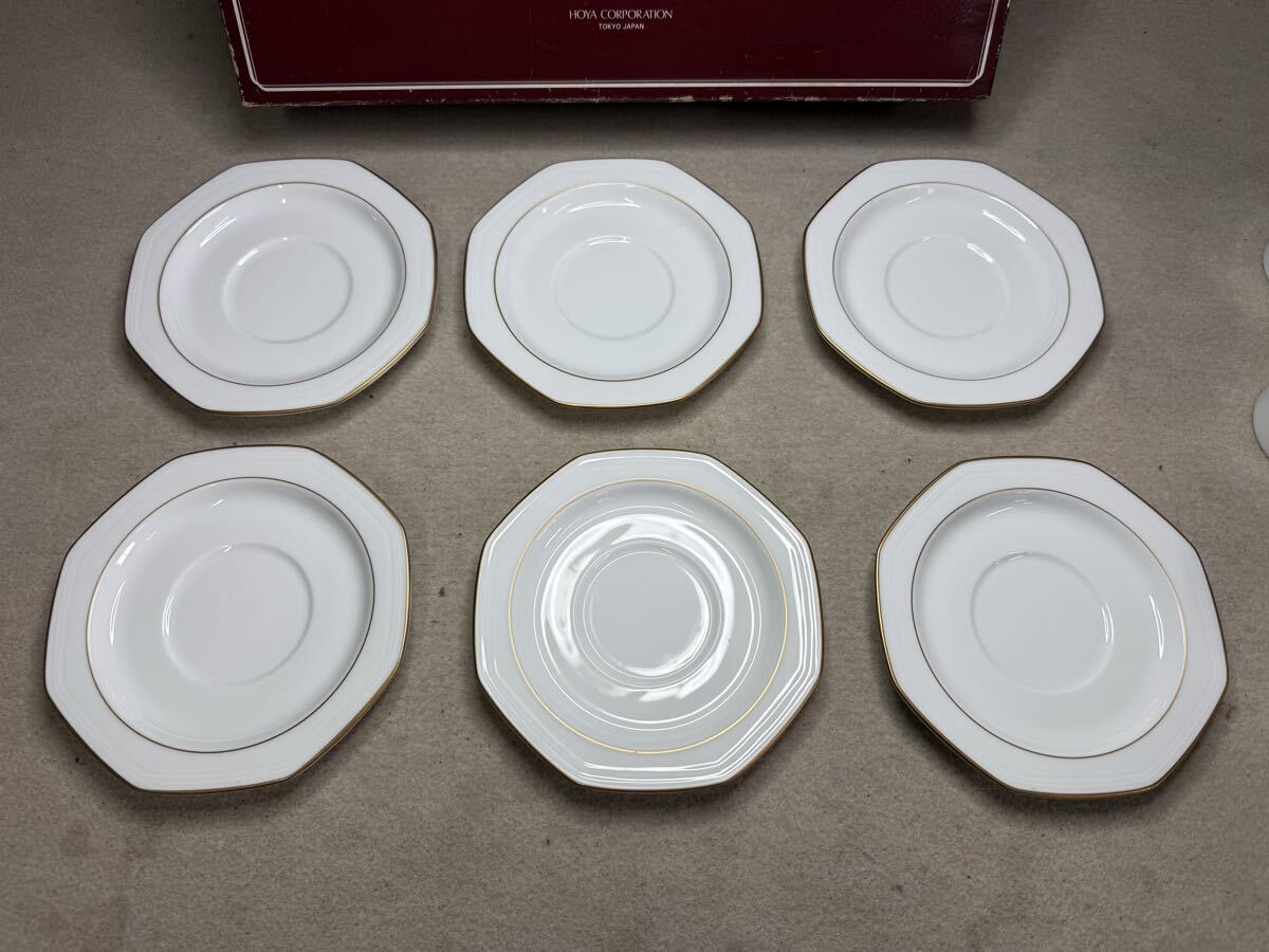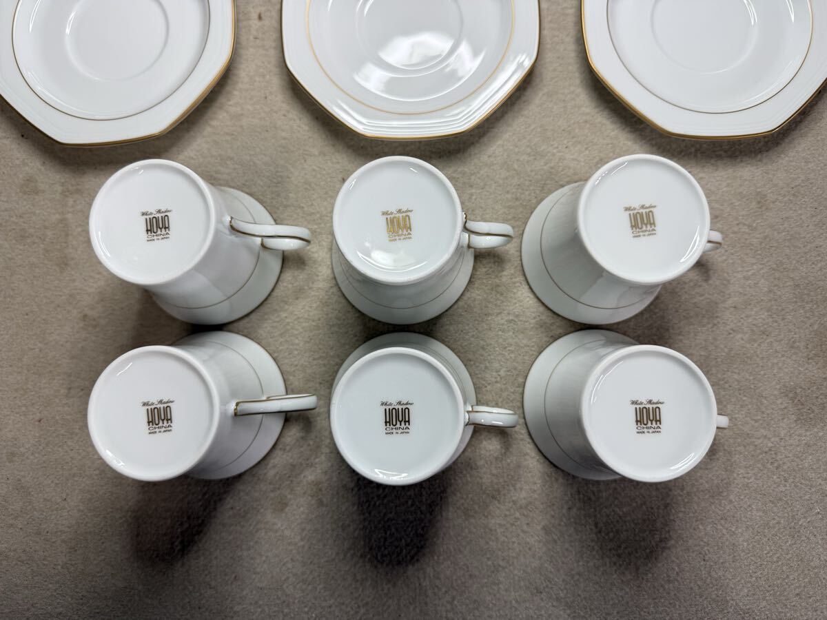 *HOYA 陶器 カップ&ソーサー6客八角形 金彩 白色 シンプル 1コーヒーカップ カフェ レトロ 喫茶店 ディスプレイ 来客用 ヴィンテージ