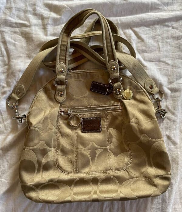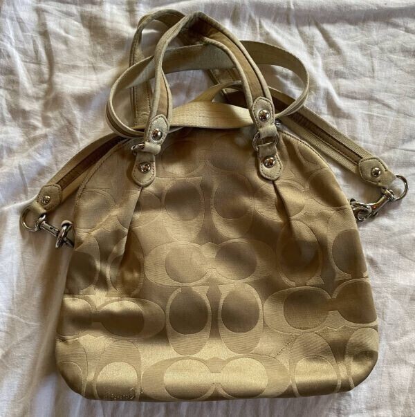 コーチ ショルダーバッグ レザー切替 シグネチャー柄 COACH 2WAY ブラウン