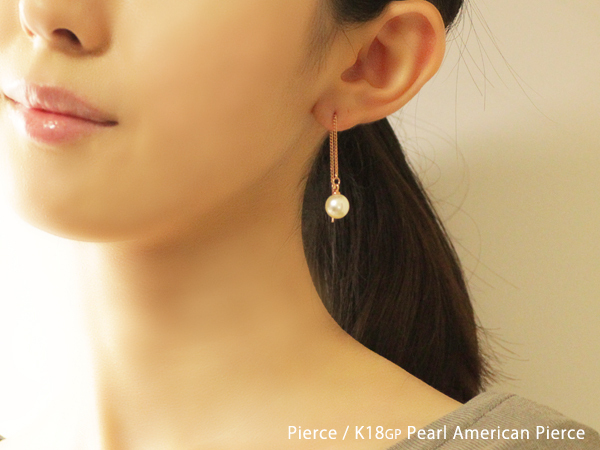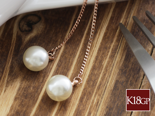 パール ピアス レディース ロング 揺れる 真珠 フォーマル 18金 18kコーティング ピンクゴールド / K18GP 2WAYパールアメリカンピアス