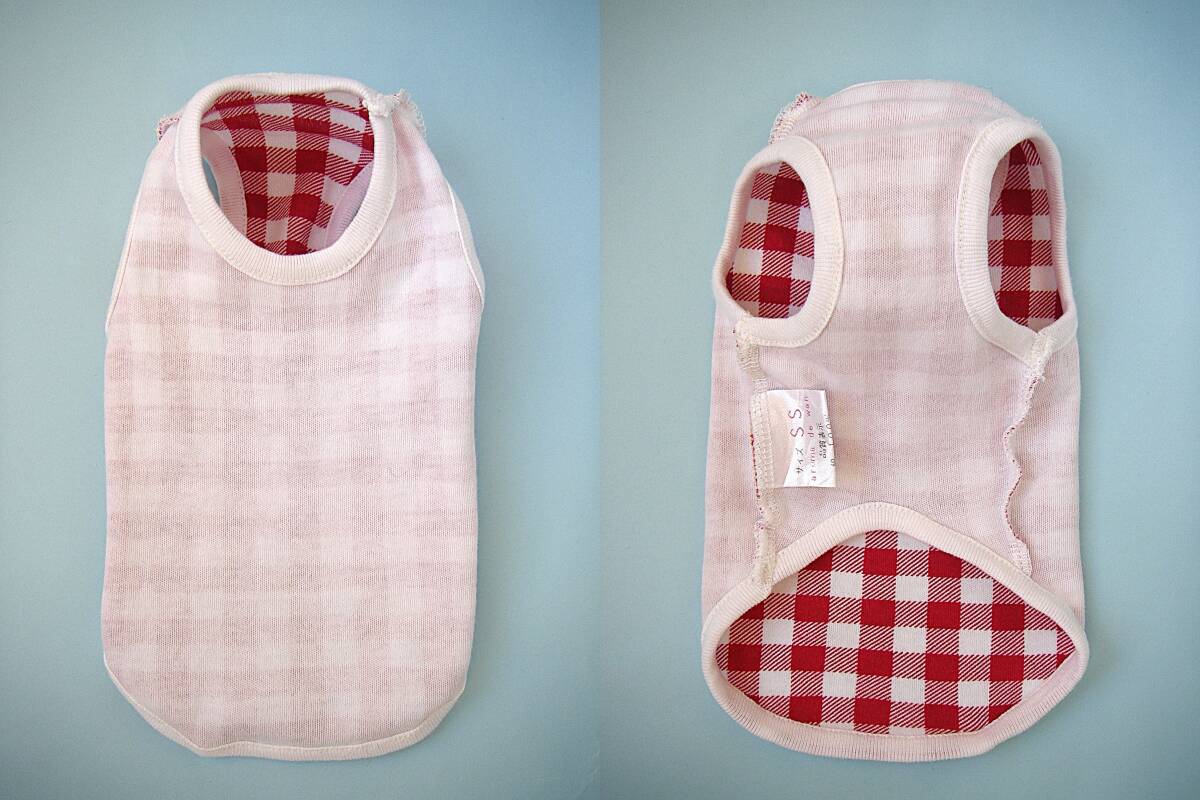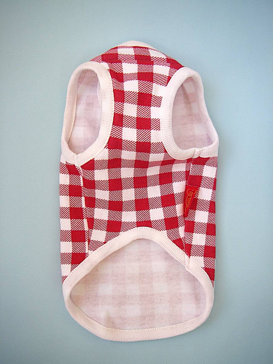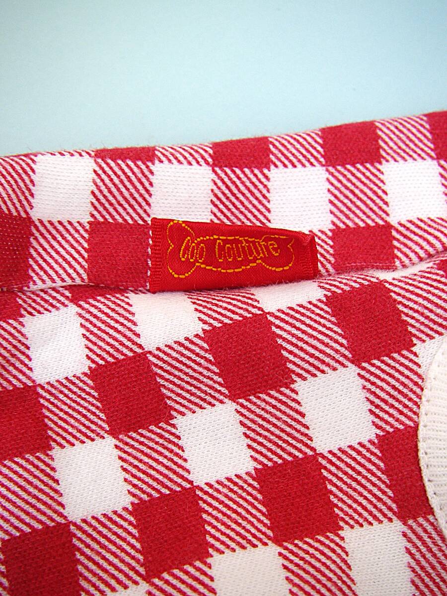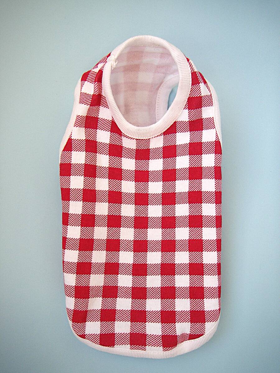 色は赤と白のギンガムチェックで、トリムの色も白です