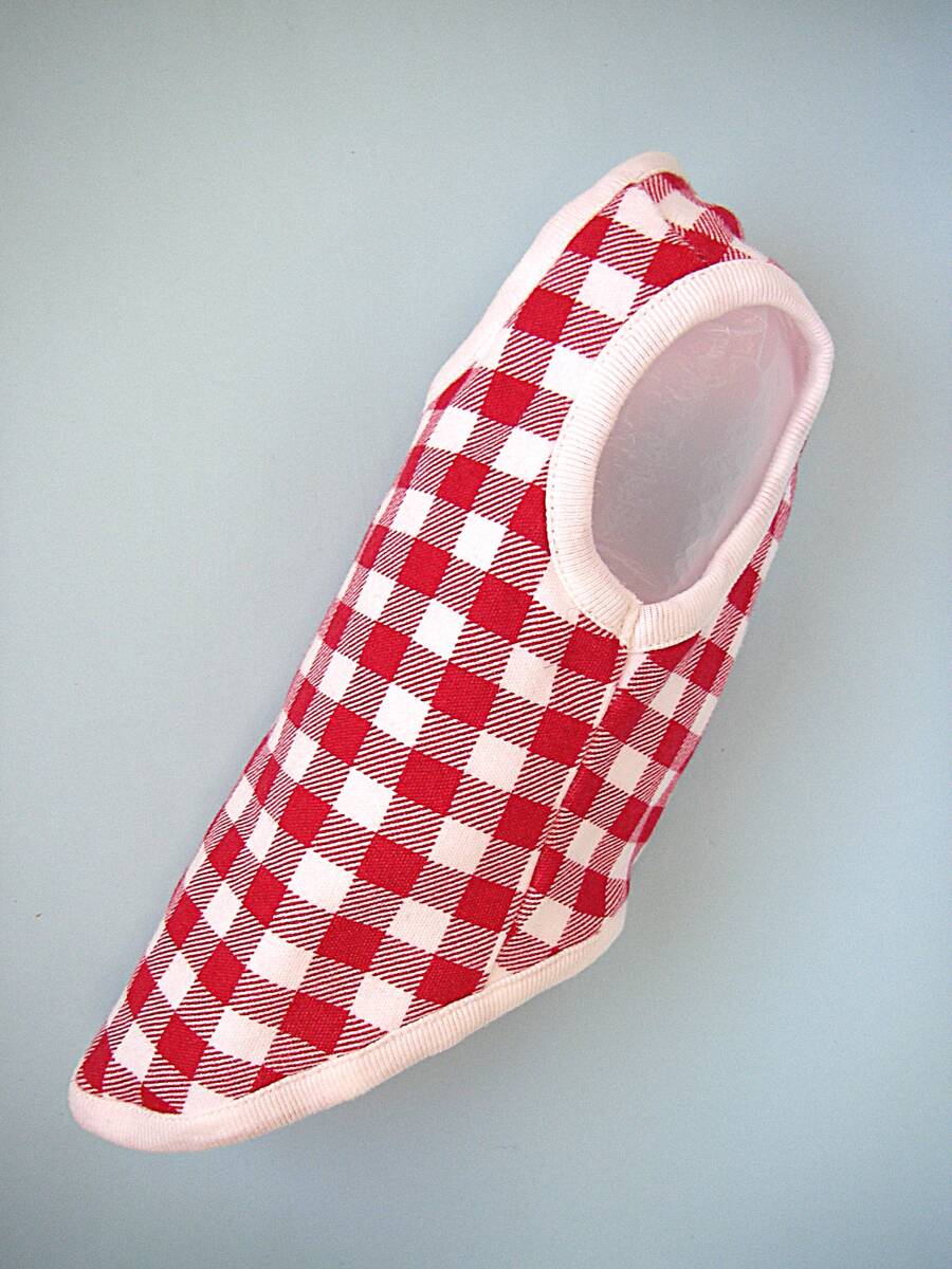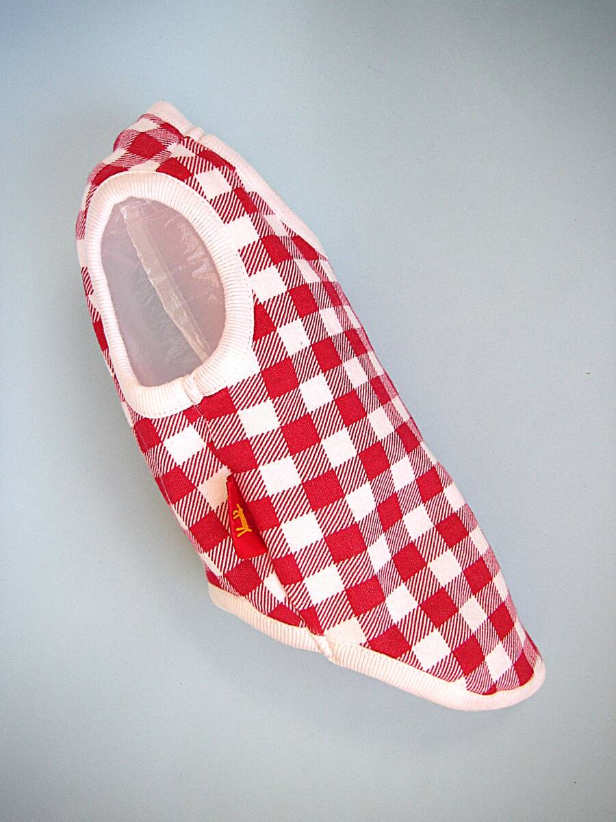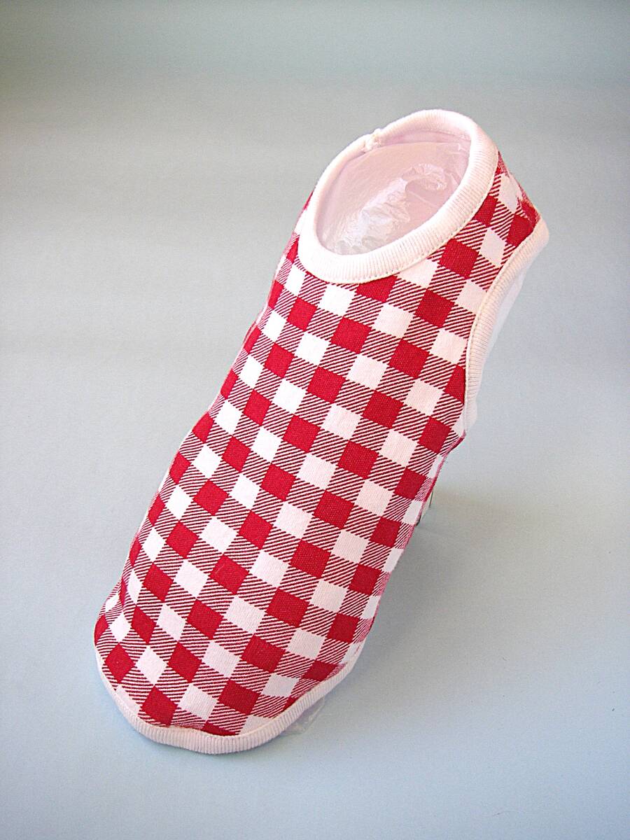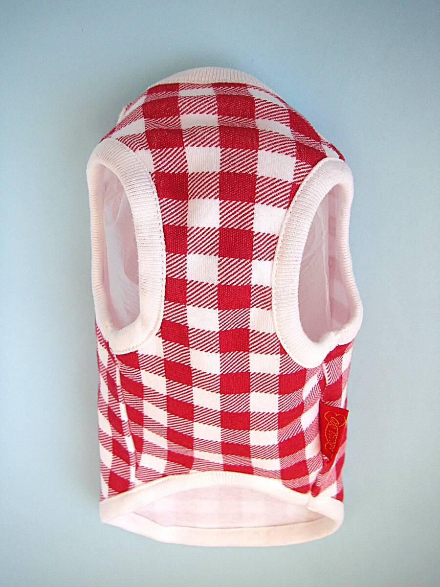 色は赤と白のギンガムチェックで、トリムの色も白です
