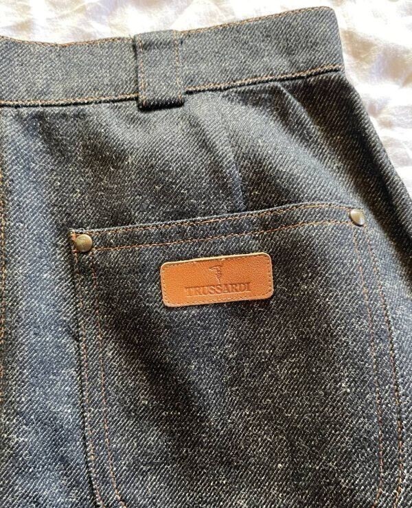 トラサルディ TRUSSARDI デニムスカート タイトスカート ひざ丈 スリット ウォッシュ加工 42 高級タイプ