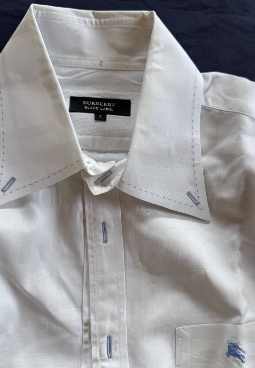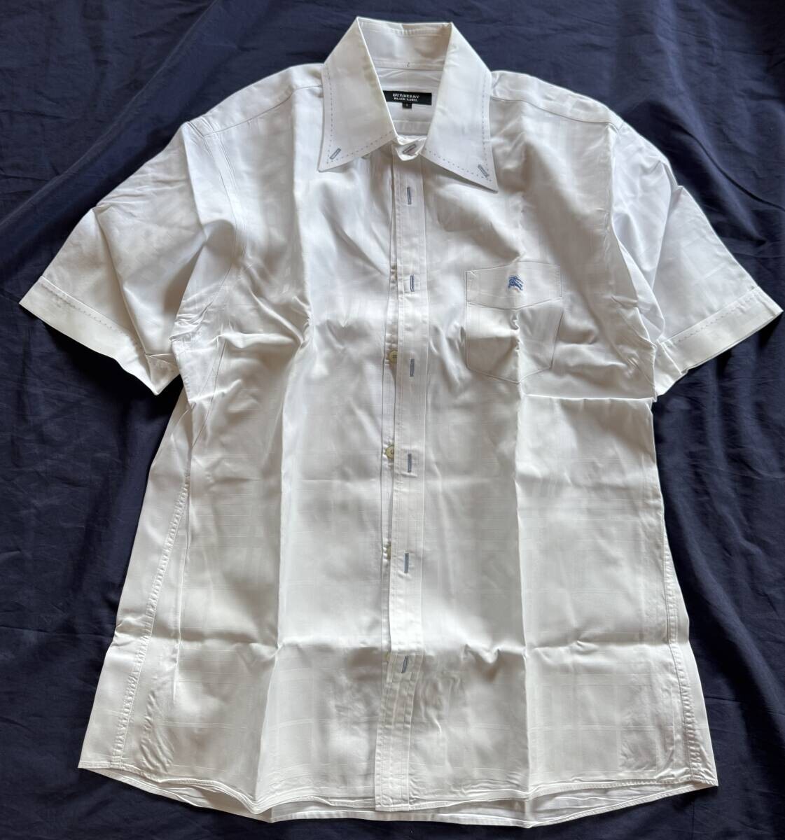 バーバリーブラックレーベル 半袖 シャツ 白 一面チェック柄 高級タイプ 3 ボタンダウン L