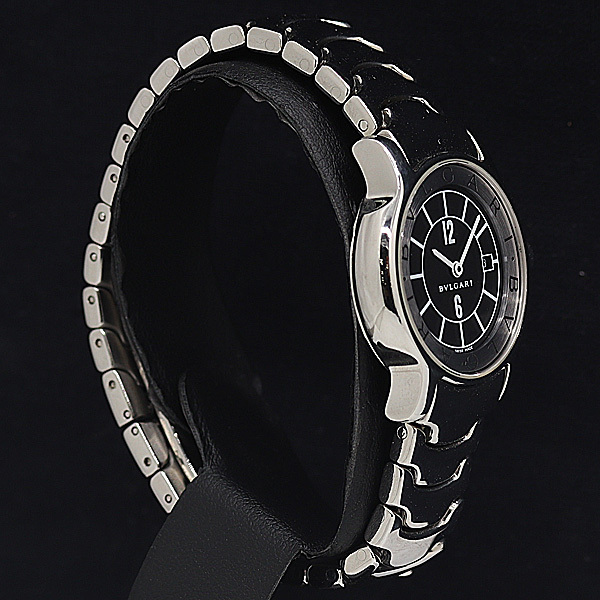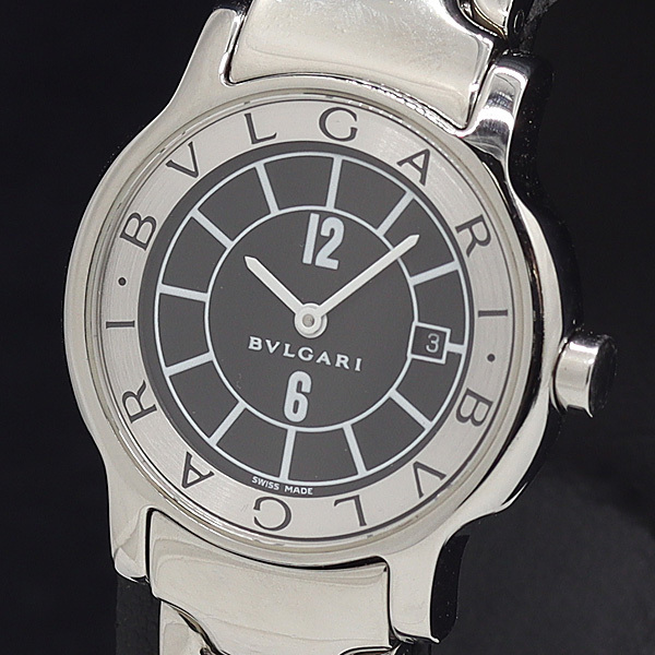 1円 稼働 良品 ブルガリ QZ ソロテンポ ST29S デイト 黒文字盤 レディース腕時計 0070400 11JWT IKE