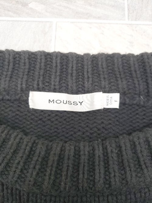 ◇ ⊇ MOUSSY マウジー コットン混 長袖 ニット セーター サイズF ブラック レディース E
