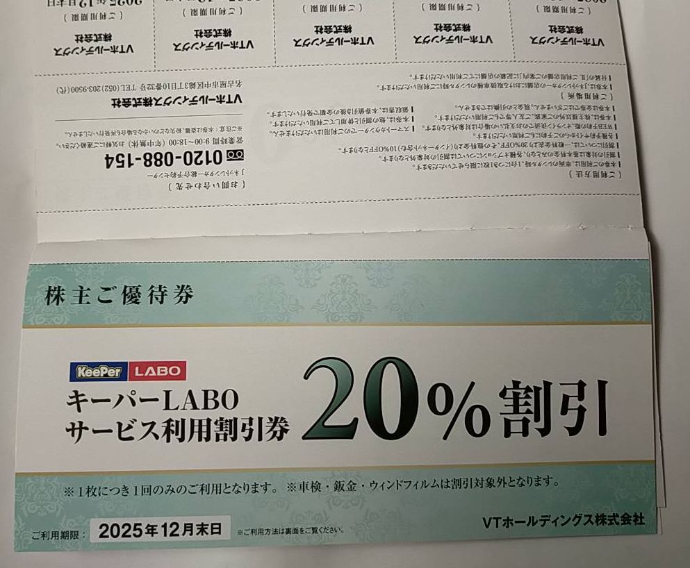 【即決 2025年12月31日迄】VTホールディングス 株主優待 KeePer キーパー 株主優待券 20%割引券他 1冊