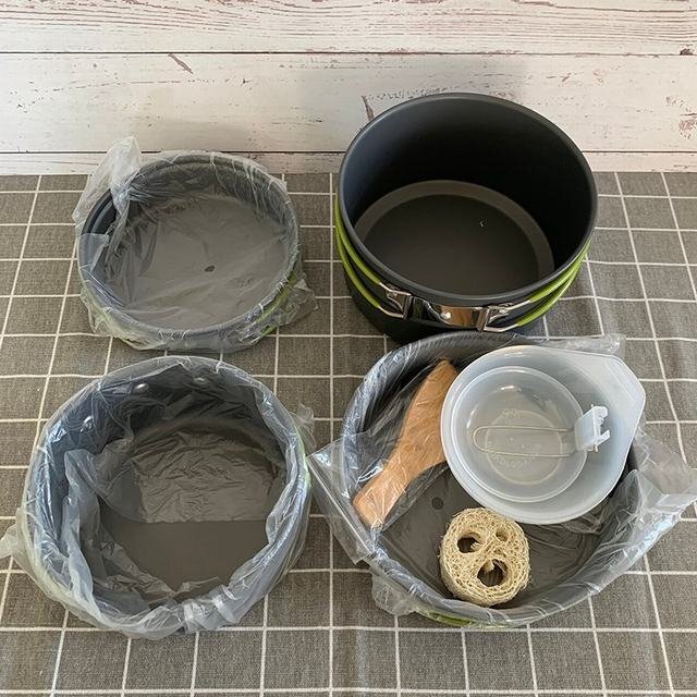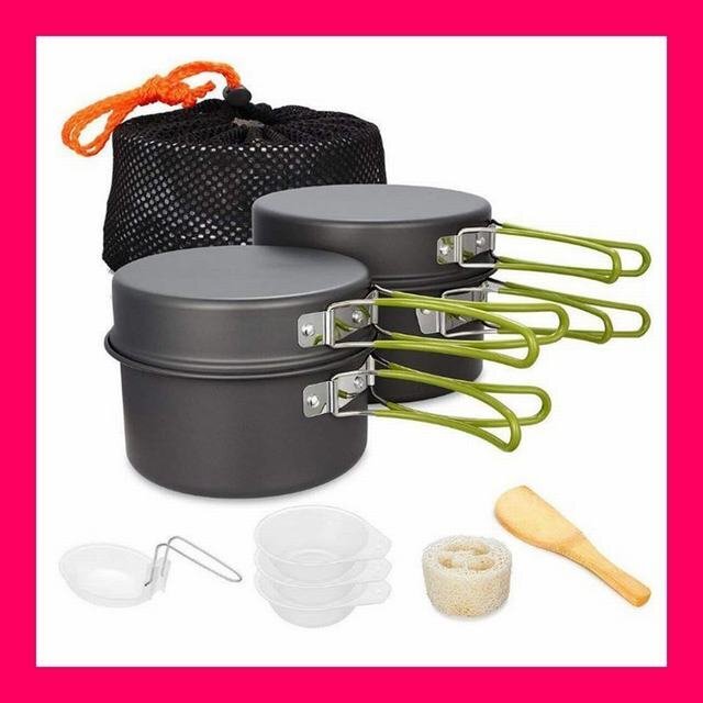 【滑り止め 防熱設計】 防熱する為、プラスチック材で作って蓋とハンドルカバーは、偶発的なやけどを防がられます、鍋を加熱した状態でも、お気軽にご利用ください! 【折りたたみできるハンドル 持ち運びが簡単】 ハンドルは折りたたみ時、10点のセットは一体に収納できます。收納バッグに入れて、非常に小さいサイズので、持ち運びがとても便利です。 【高強度 高耐久】 ハードアノダイズド加工された鍋は表面硬度が高いので、耐摩耗性が高く、表面の傷や腐食等を避けることで永く使用できます。 【食品級材料】 エコの陽極酸化アルミ素材で作られた鍋が軽くて、無毒、健康かつ環境にやさしいタイプ。優れた熱伝導性を備えたアルミニウムを使用しているので火が通りやすい。 【異なるストーブで使用できる】 ストーブの様々なタイプに適していることができる、非常に便利な火に焼くことができます。アウトドア 食器メッシュポーチ付きでコンパクトでに収納できるので携帯便利です。 【様々な用途】 焼く、炒める、揚げる、煮るいろいろな調理方法に適当します。 家庭用にもアウトドア用にも適しており、キャンプツーリング、登山、BBQ、フィッシングに大人気です。 非常時や防災などの場合ににも大活躍できるクッカーセット!