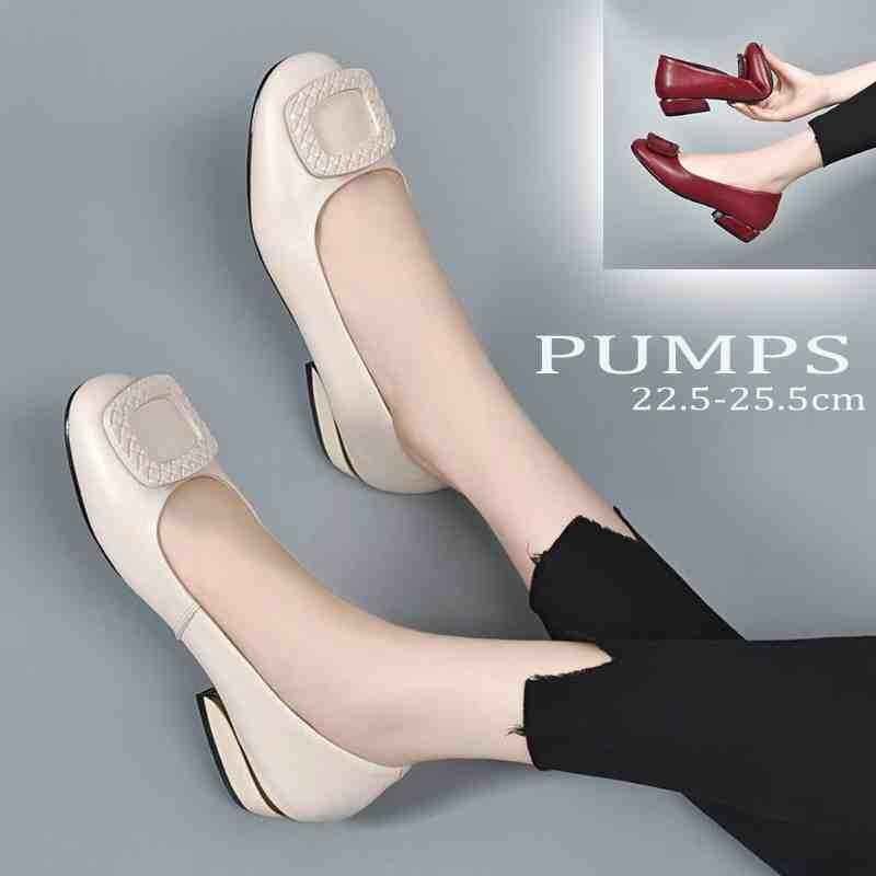 ・幅広のラウンドトゥで窮屈感なくゆったり履けるパンプスです。