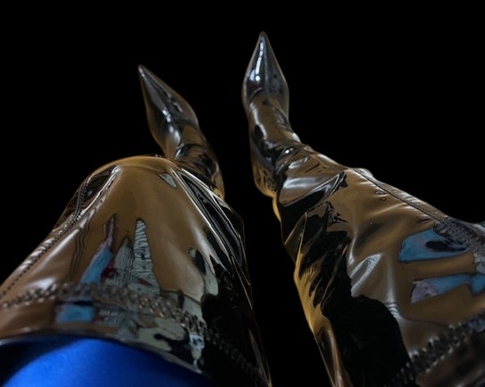 光沢 ニーハイ☆サイハイ ロングブーツ ソフトエナメル 26m 尖り フェチ