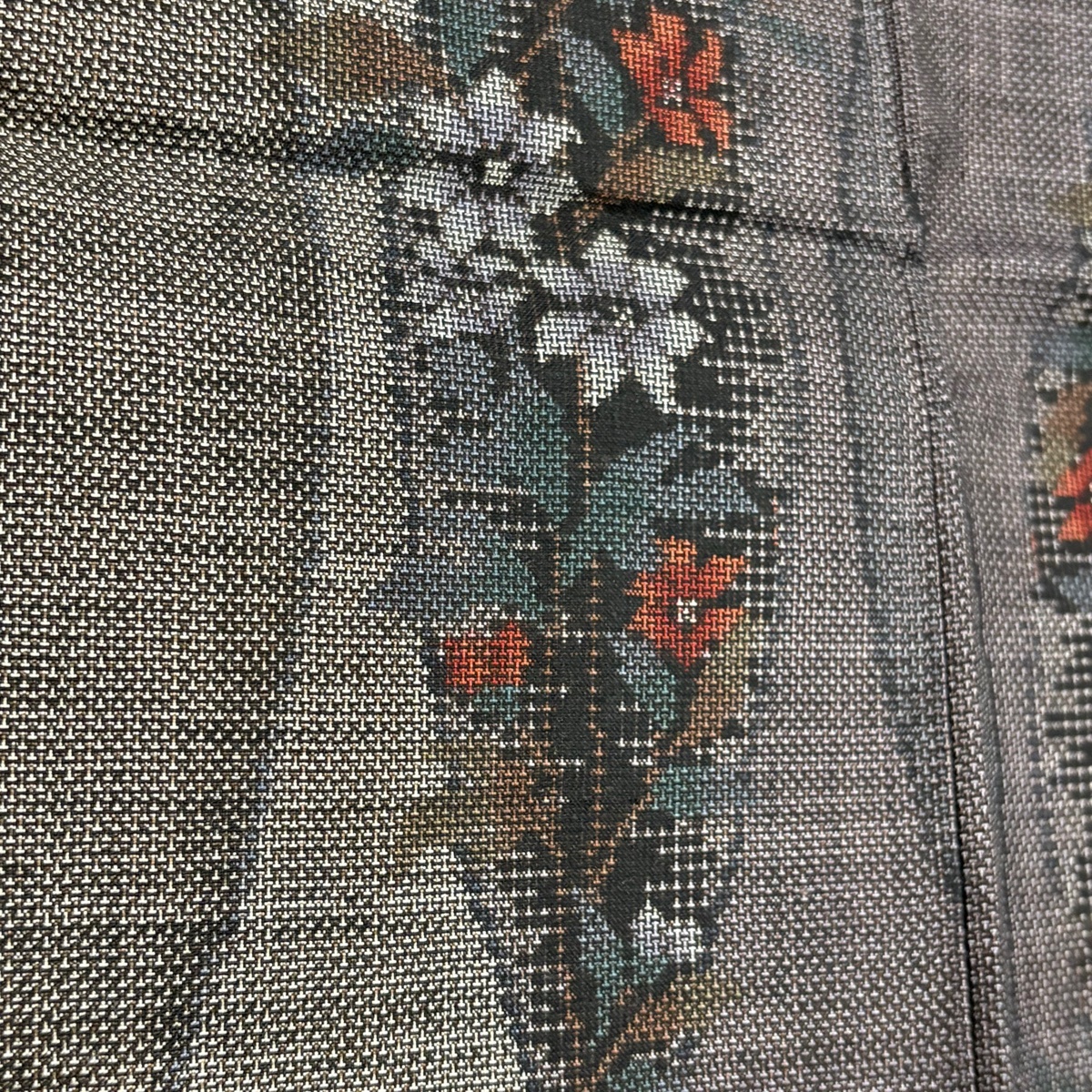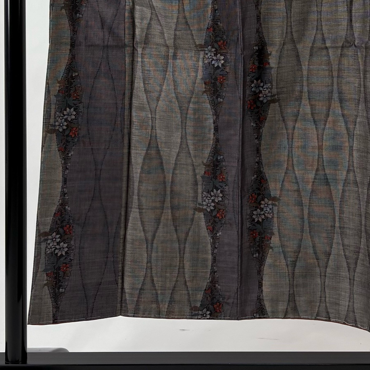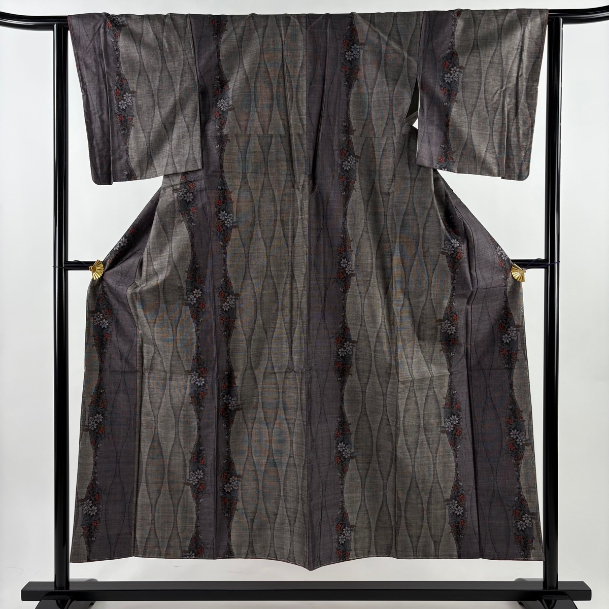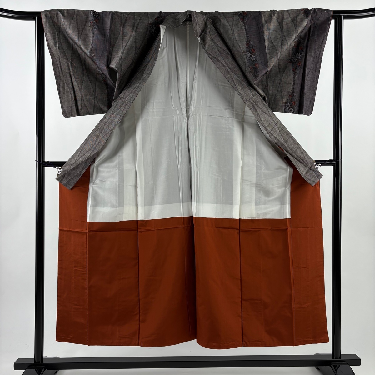 | 紬 美品 秀品 草花 立涌 灰茶 袷 身丈152 裄丈63 S 正絹 【中古】 |