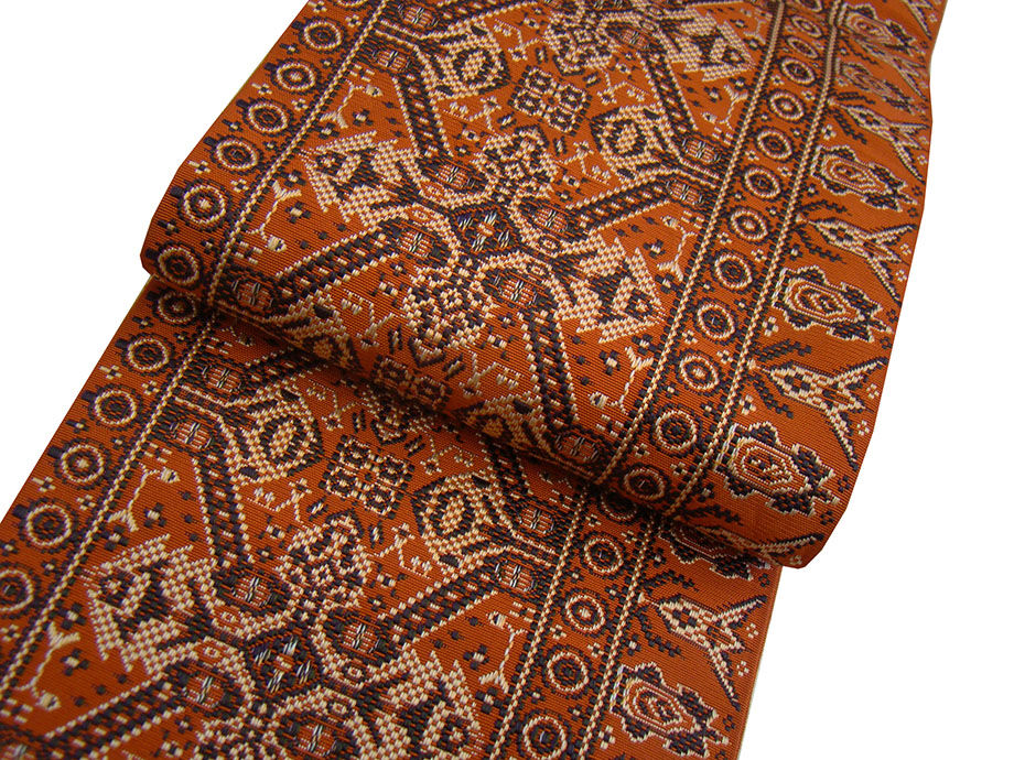 商品の説明 | ●USED品、シミ、汚れ無し。 ●正絹 しっかりとした結び易い西陣織四寸小袋帯。 煉瓦色地に黒、アイボリー等の織柄。全通柄。 ※お洒落な西陣織の四寸小袋帯です。 紬や小紋に合せられると良いでしょう。年代に関係なくご使用出来ます♪♪ |