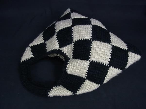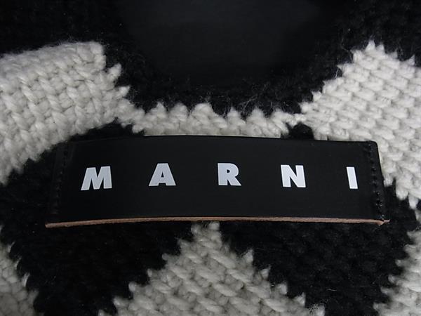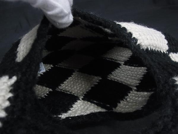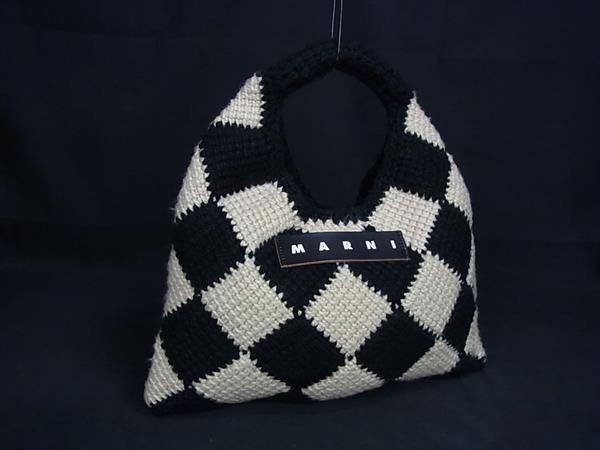 1円 ■美品■ MARNI マルニ ダイヤモンド アクリルニット ワンハンドル ハンドバッグ レディース ブラック系×クリーム系 FN8809