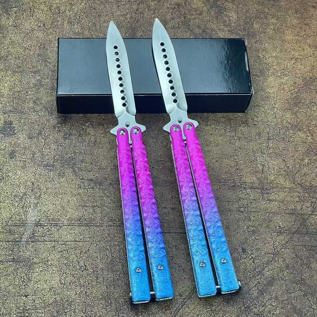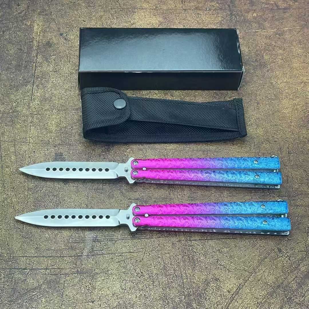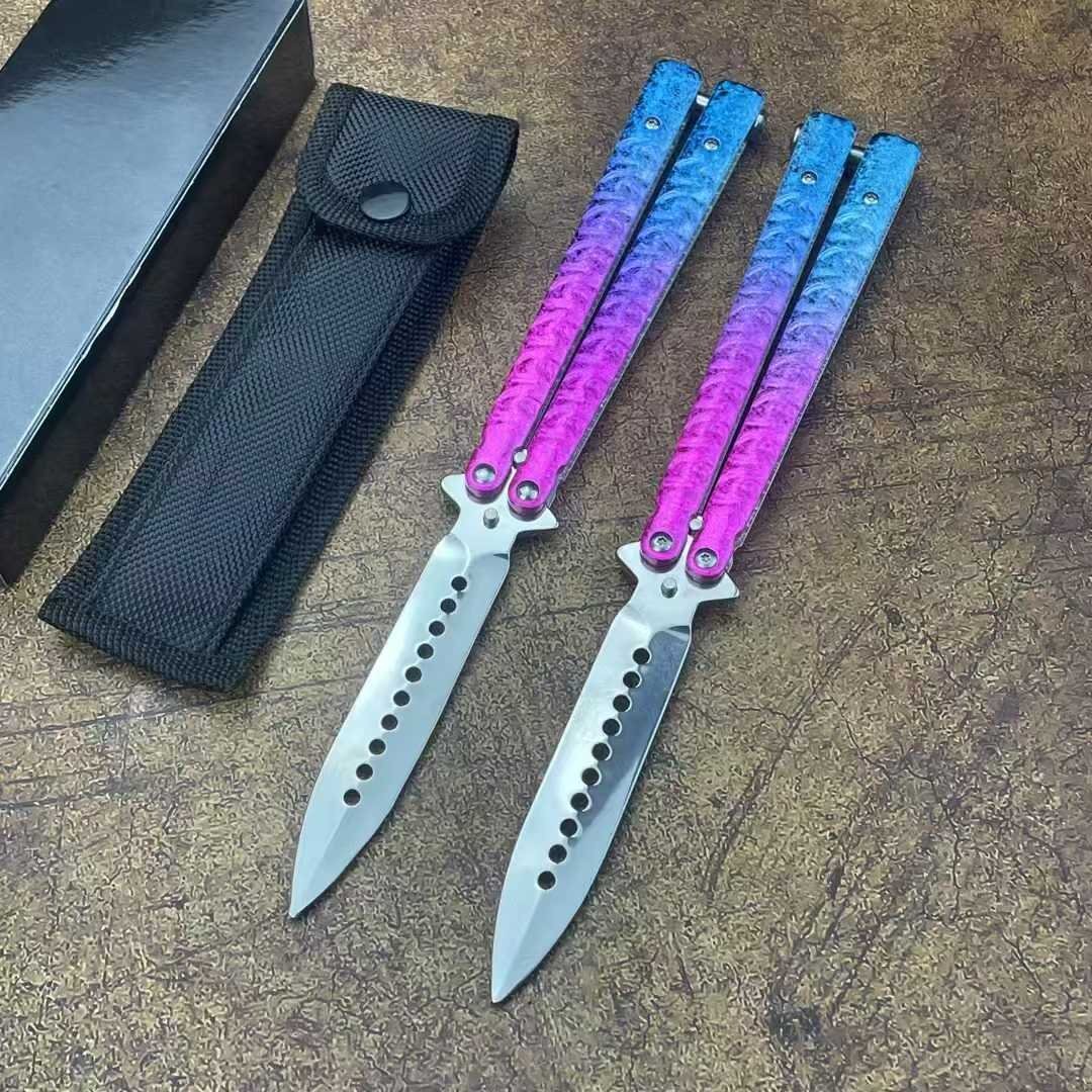 2本セット 5CR鋼製 バタフライナイフ ナイフ サバイバル道具 ナイフ 狩猟ナイフ 釣り ハイキング 野外登山 刃が付いてない