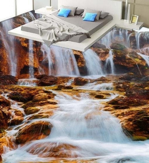 C383 巨大 3D フロアマット 1.45m*3m* 和モダン 形成池 鯉 滝 風景 景色 リフォーム 防音 断熱 滑り止めシート 床 壁 天井 はがせるシール