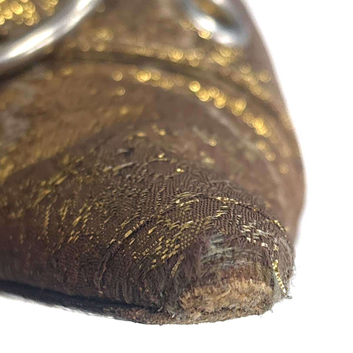 ダメージ、インソール全体に薄汚れ、ヒールにややすり減り、金具にやや錆、つま先にスレ、やや使用感がございます。