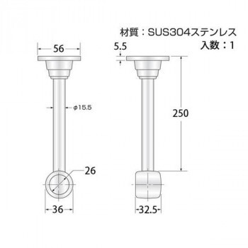 | 貫通しない止まるタイプのブラケット。クローゼットなどの天井からポールを吊るす時におすすめです。 |