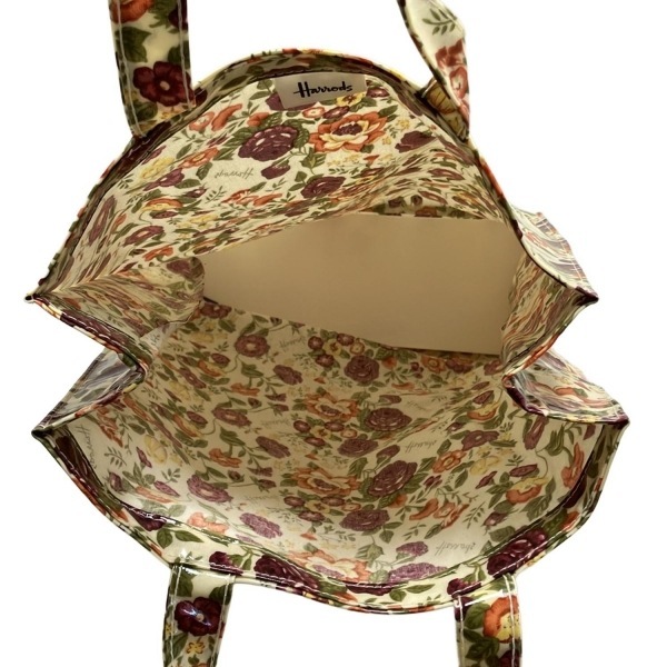 ハロッズ HARRODS トートバッグ - アイボリー×ボルドー×マルチ 花柄 バッグ