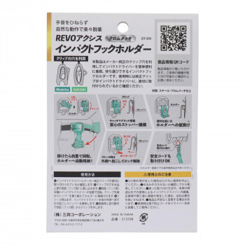 | 本製品はMakita、HiKOKIのメーカー純正のクリップ穴を利用してインパクトドライバーを簡単便利に着脱、持ち運びができるインパクトフックホルダーです。手首をひねらず自然な動作で楽々脱着。仮掛けも可能、便利なホルダー。マグネット内蔵、安心ストッパー機構。落下防止コード取付OK。 使用時には純正クリップがインパクトドライバーに、適切に取付けられているかご確認ください。 ※仮掛けでの高所使用はおやめください。 |