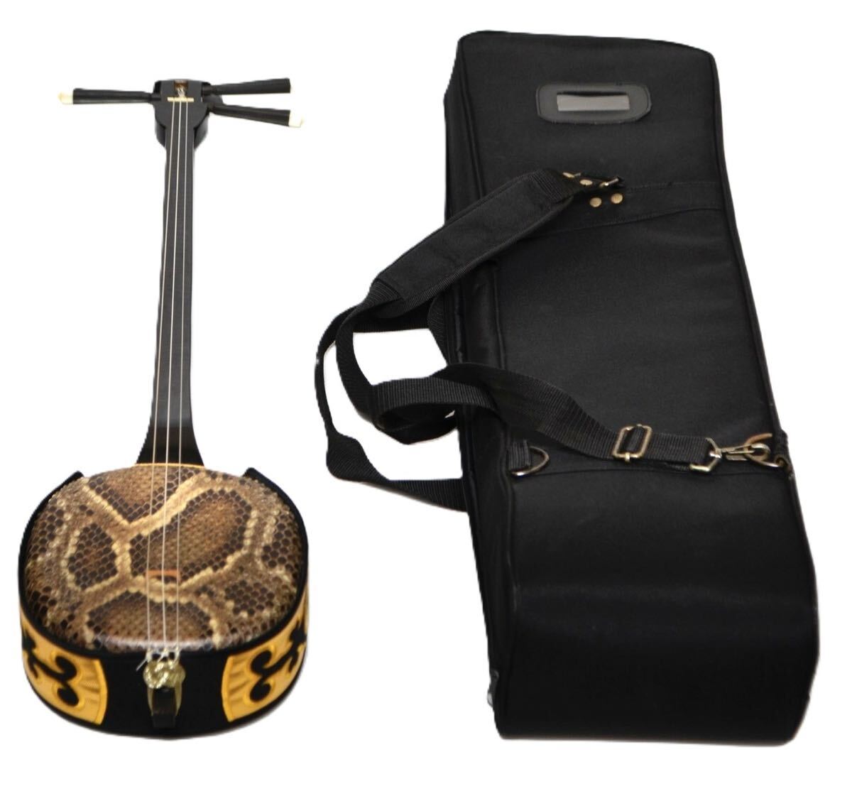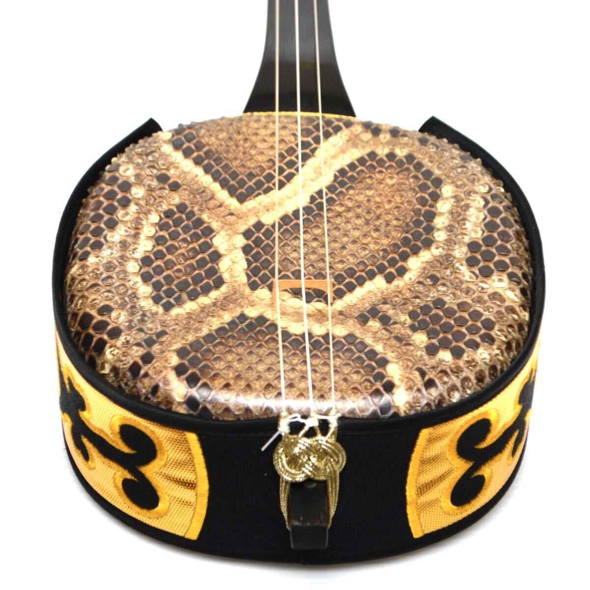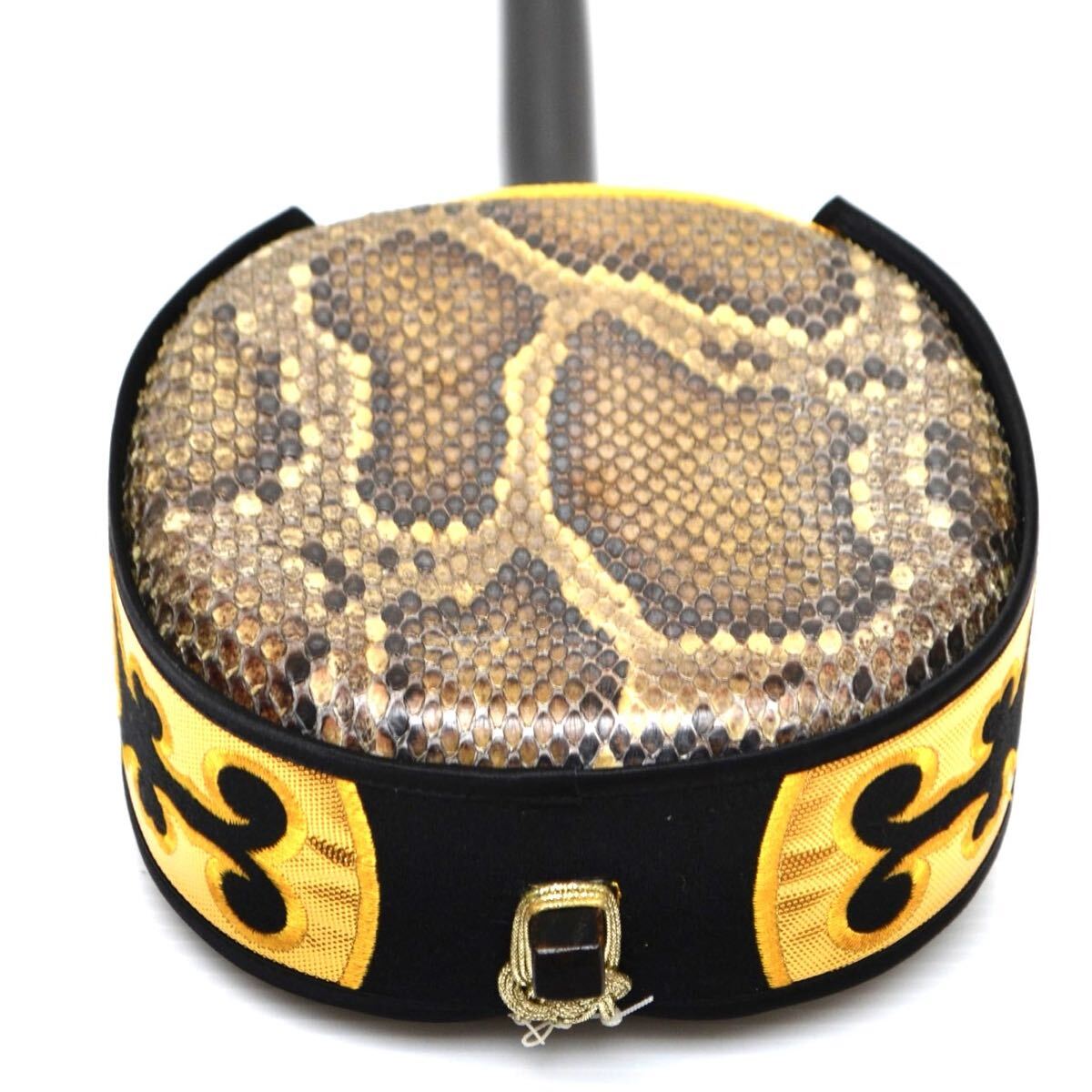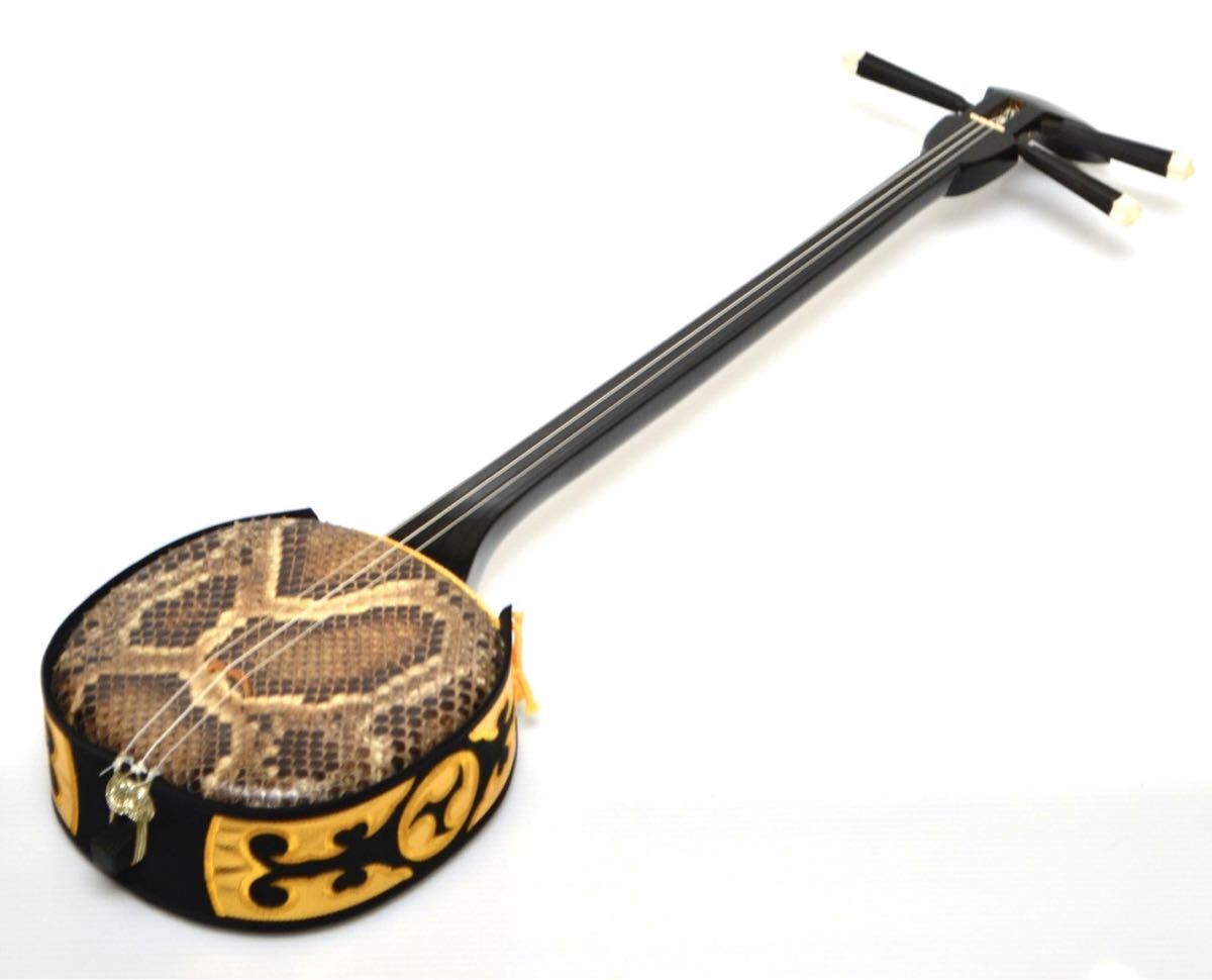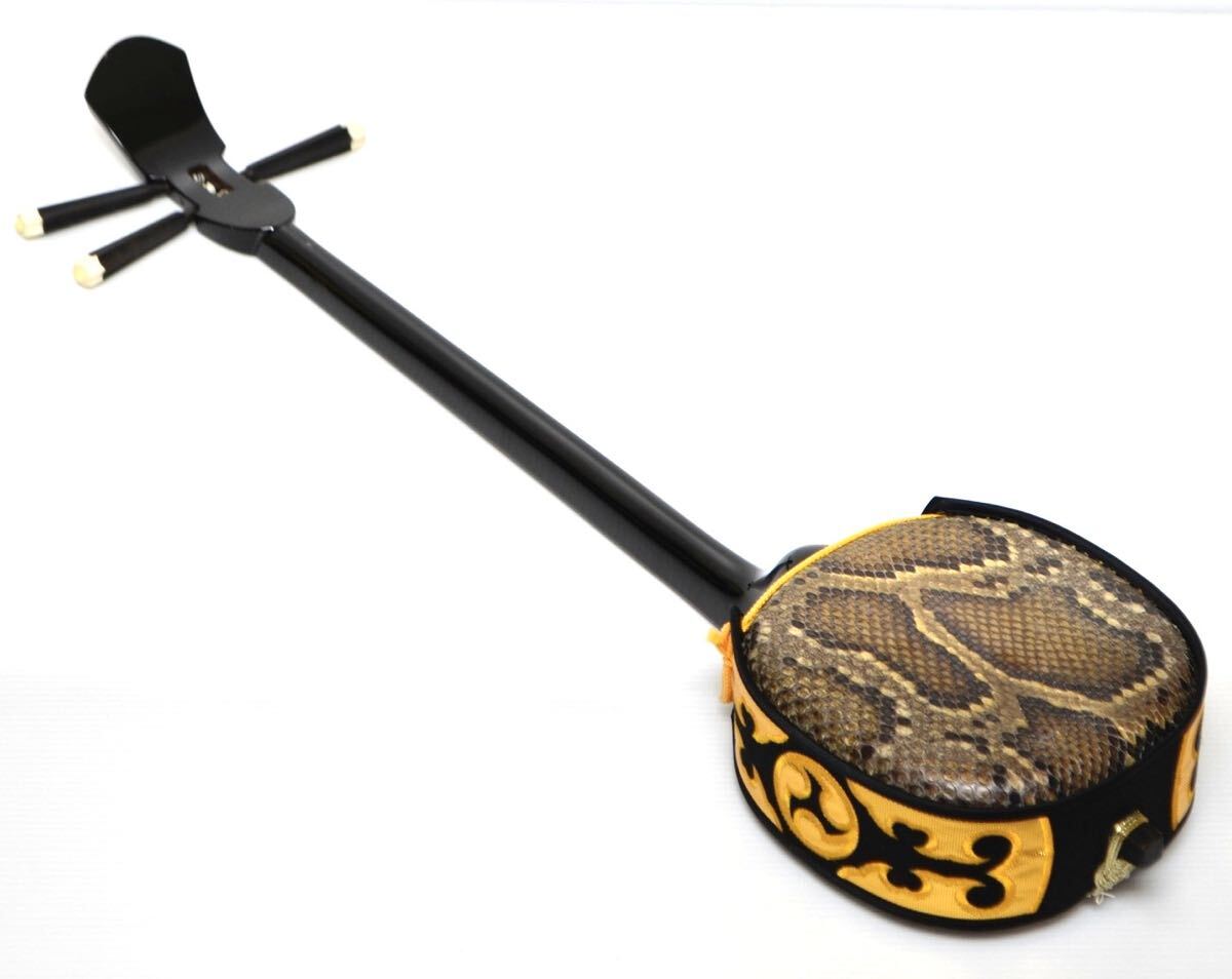 【入手困難/極上美品】沖縄三味線 サンシン 蛇皮 本皮 全長約80cm 琉球 和楽器 弦楽器 伝統楽器 蛇味線 沖縄三線 ソフトケース付 三線