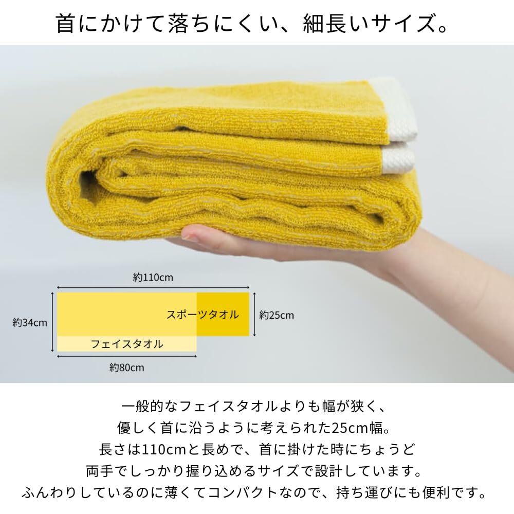 90年以上の歴史を誇る老舗タオルメーカーオリジナルのF90の糸を使用。甘撚りにすることでソフトな肌触りと、パイル地のしっかりした吸水性を実現。 リバーシブルカラーなので、巻き方で表情が変化するのも魅力です。スポーツジムや旅行への携帯用にもオススメです! スポーツをする人へのプレゼントとしても人気の商品です。イニシャルや背番号など、刺繍入りも素敵ですね。アイディア次第で楽しいプレゼントに!!