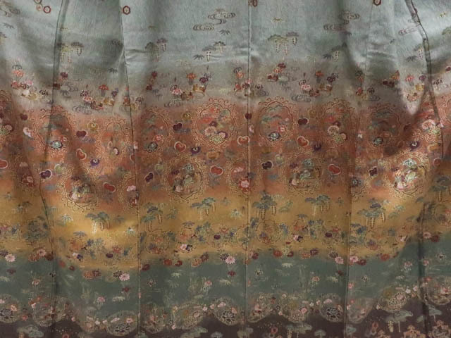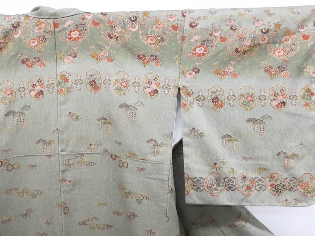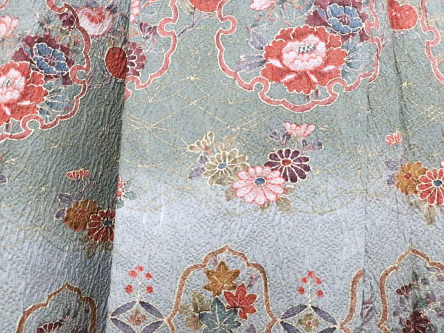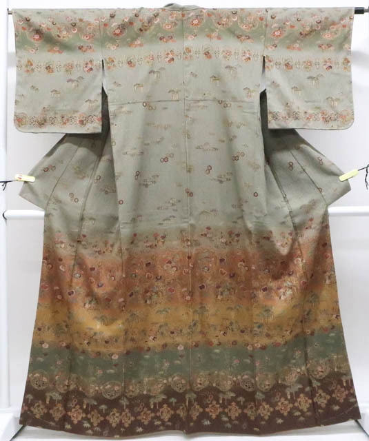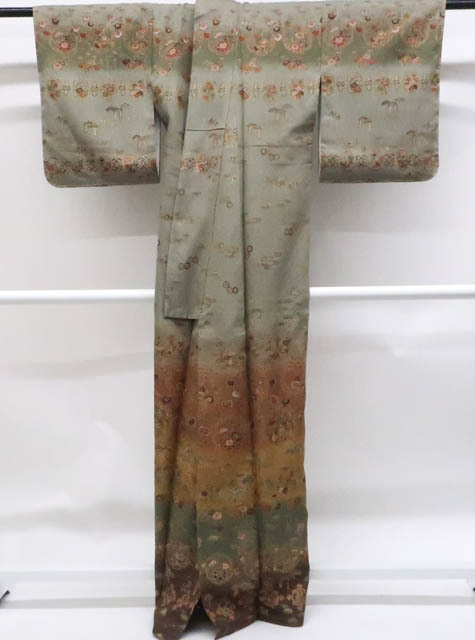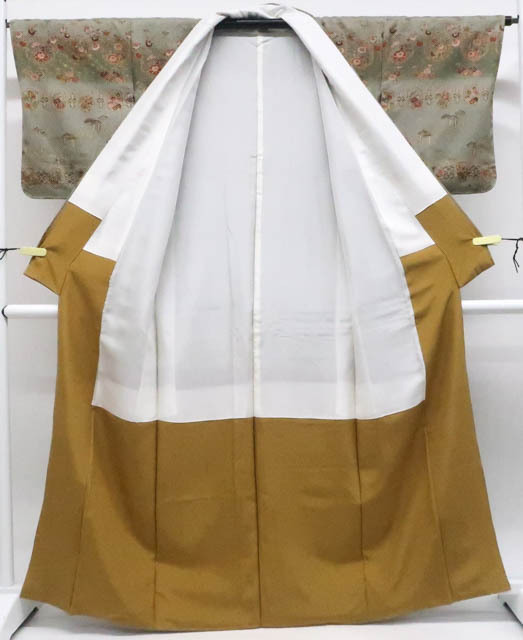 リサイクル商品のため、保管臭がございますがご着用いただけると存じます。 地色は灰緑・茶・黄土です。 1枚目の画像が近いお色かと思われます。 素材は正絹です。 日本国内から発送いたしております。 発送後は追跡番号をお知らせいたします。 スタッフによる手作業での検品採寸済み。 |