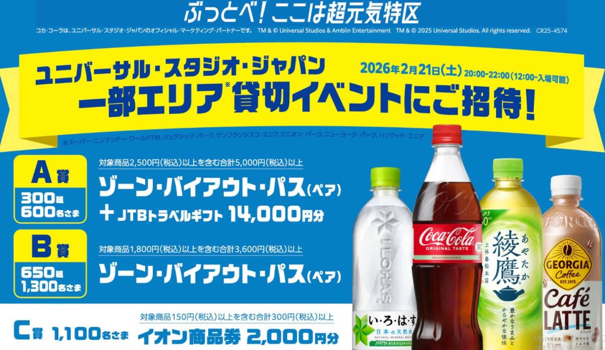 レシート懸賞応募 ユニバーサル・スタジオ・ジャパン一部エリア貸切イベントご招待キャンペーン イオン商品券2000円分当たる