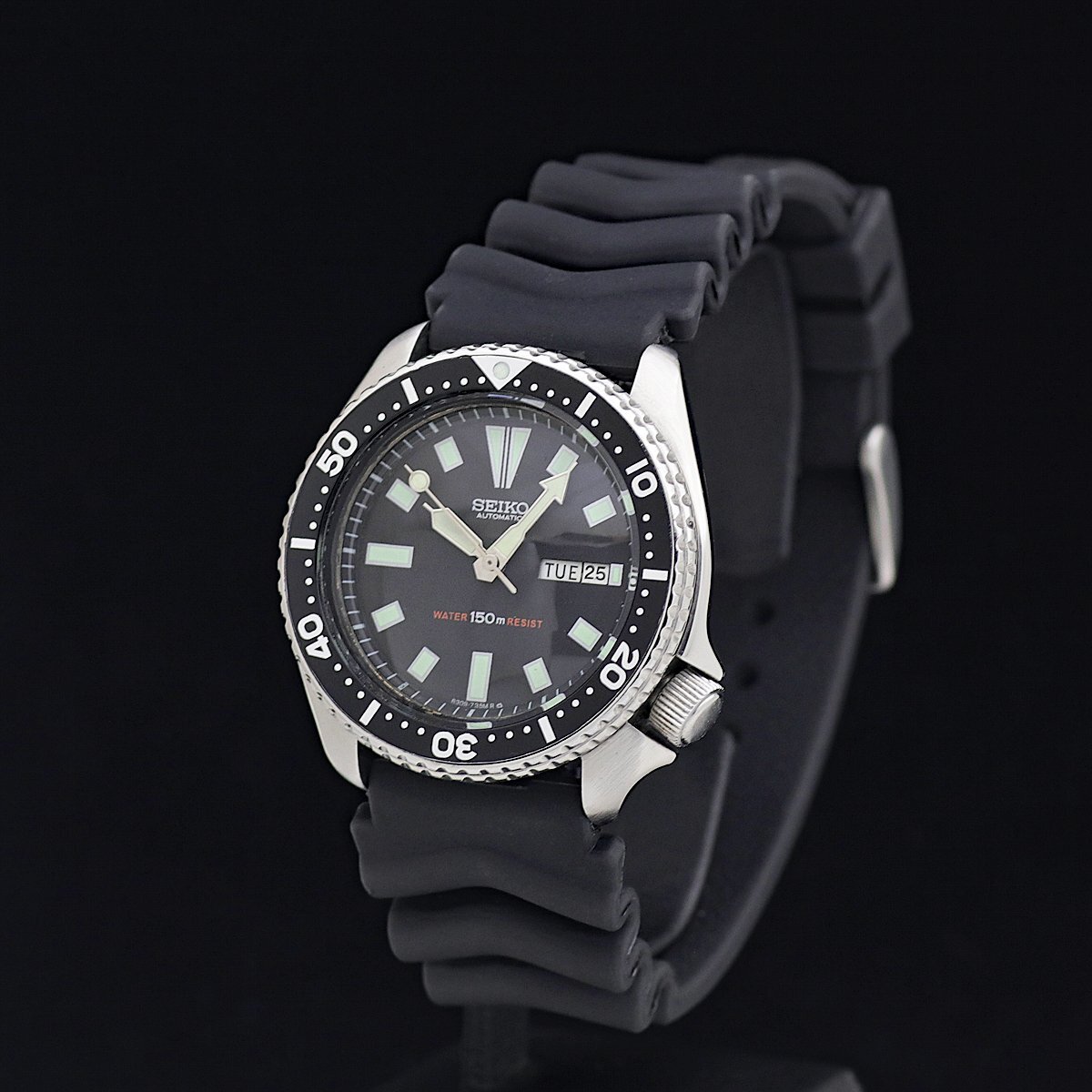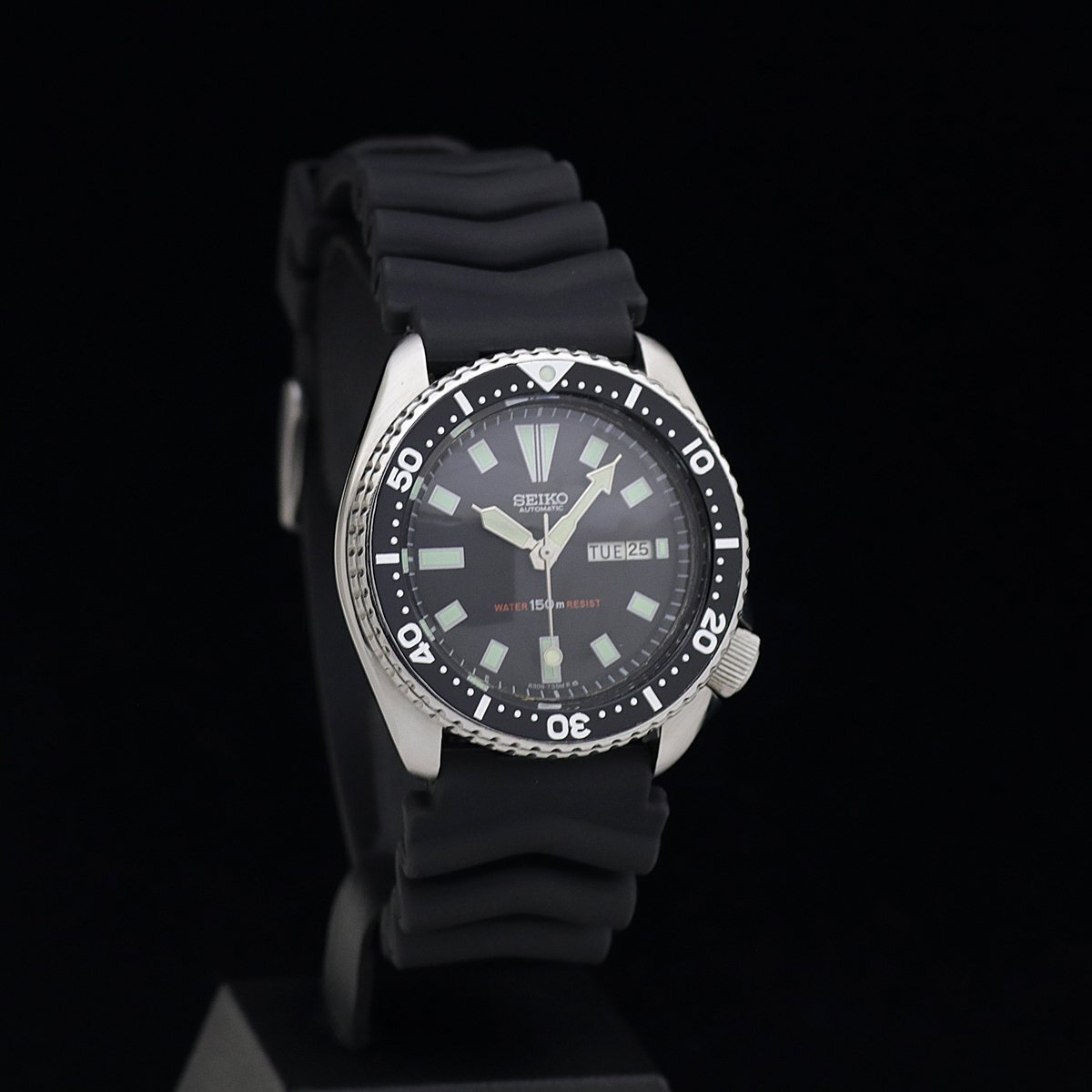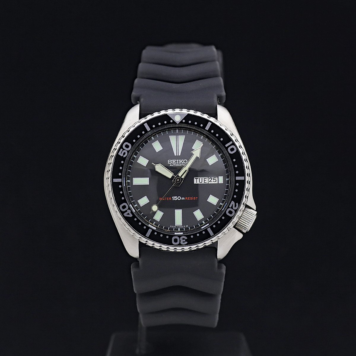 | 商品説明 | ![]() ![]() ![]() ●SEIKO セイコー 150m サードダイバー 自動巻 ●Cal:6309-729A ●シリアル:560*** ●メンズ/自動巻 ●日差:+3秒~+6秒(機械計測)●ケース/ブレス素材:SS/樹脂(純正品) ●文字盤色:ブラック ●ベゼル径:40mm ●ケース径:46mm(リューズ込み) ●ケース厚:13.3mm ●腕周り:17-23.5cm ラグ幅:22mm ●重さ:101.9g ●定価:不明 ●付属品:なし ●ランク:A~B 【ランク詳細】 S 新品、未使用 SA 極上美品(細かな傷も少なく、とても綺麗) A 美品(細かな傷はあるが、目立つ傷がない) B USED(細かな傷はあるが、目立つ傷が少ない) C USED(細かな傷があり、目立つ傷が多少ある) J ジャンク(動作不良、一部動作不良、動作未確認) ●細かな傷、裏蓋に細かな傷はありますが、目立った大きな傷は無く美品です。 ●ガラスは無傷です。針に少し小さな傷があります。文字盤はきれいです。 ●夜光は光ります。 ●回転ベゼル、ねじ込みリューズ共に正常です。 ●ベルトはきれいです。 ●オーバーホール歴は不明です。 ●動作確認済みで、正常に動作します。 ●新品、未使用品、かなりきれいで手を加える必要がないと判断した商品以外は、弊社もしくは専門の業者にて、専用の器材を使って洗浄、研磨等を行い、出来るだけきれいな状態でお届けできるよう心がけております。また梱包の際には除菌シートにて清掃を行った上で発送させていただきます。(一部革素材は行いません) ●ご質問、ご不明点は「m1t2m3_2006@sun.cims.jp」までご連絡ください。 | ||||||||||||||||