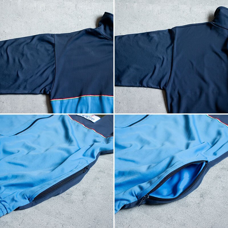 イタリア陸軍【Esercito】のトレーニングジムスーツのジャケットのみです。写真の7枚目までは流用です。またワッペンも違うデザインだったりなかったりもするので出品実物の写真でご確認ください。 ネイビーとブルーのバイカラーにイタリア国旗の赤、白、緑でパイピングされてた手の込んだ デザインがお洒落なアイテムです。 ジャケットとパンツ共に単体でも着用頂けるのも魅力の1つです。 素材:ポリアラミド 57% アセテート 43% サイズ XS( TOPS: 身幅51cm/肩幅46cm/着丈60cm/裄丈56cm PANTS: ウエスト60-75cm/総丈100cm/股下73cm ) M( TOPS: 身幅53cm/肩幅48cm/着丈65cm/裄丈63cm PANTS: ウエスト65-80cm/総丈107cm/股下77cm ) L( TOPS: 身幅56cm/肩幅54cm/着丈67cm/裄丈63cm PANTS: ウエスト70-85cm/総丈109cm/股下77cm ) XL( TOPS: 身幅61cm/肩幅57cm/着丈76cm/裄丈70cm PANTS: ウエスト75-90cm/総丈110cm/股下80cm ) ウエストは、ゴムが入っておりドローコードで絞ることが可能です。 沖縄離島を除く全国500円でお送りいたします。落札価格にプラスでお願いします。