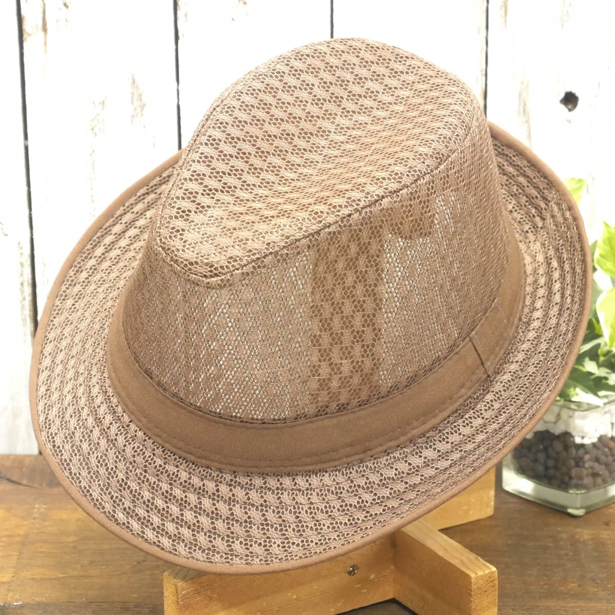 全国一律送料450 大きなサイズ Lサイズ サイズ調整 フェドラハット ブラウン メッシュ シンプル ハット パナマ ボルサリーノ 中折れ