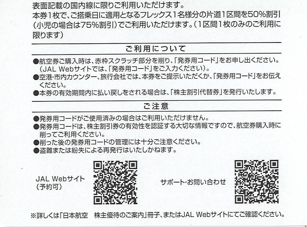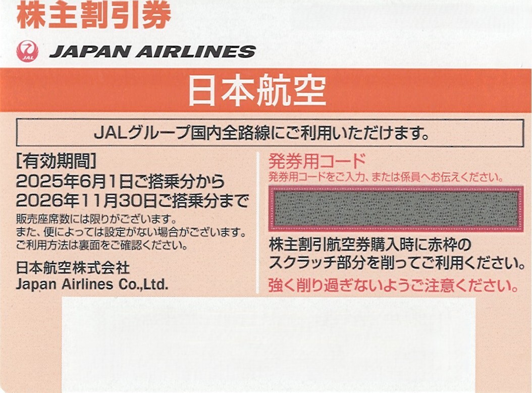 JAL 日本航空 株主優待券 1枚 搭乗期限 2026年11月30日ご搭乗分まで