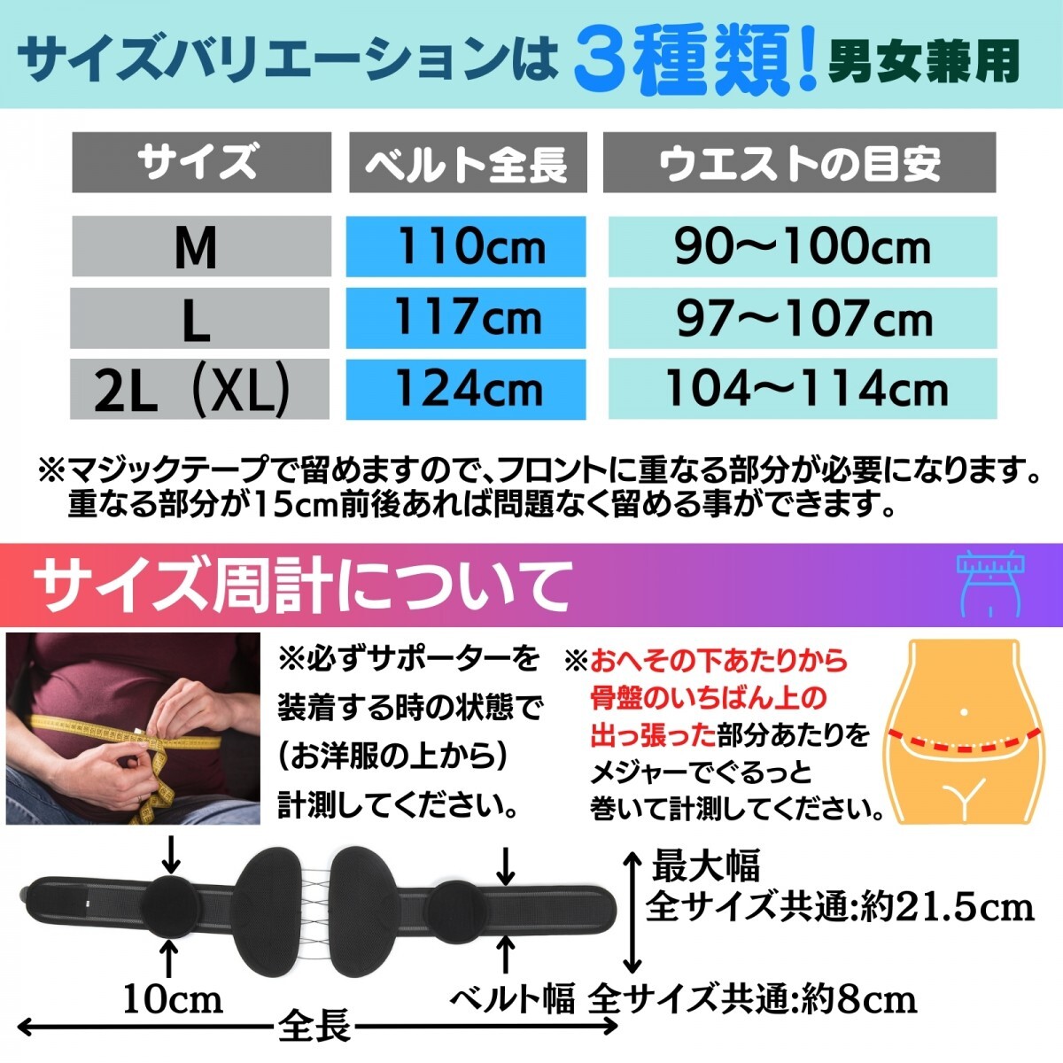 ※マジックテープ固定のため、15cm程度の重なりが必要です。