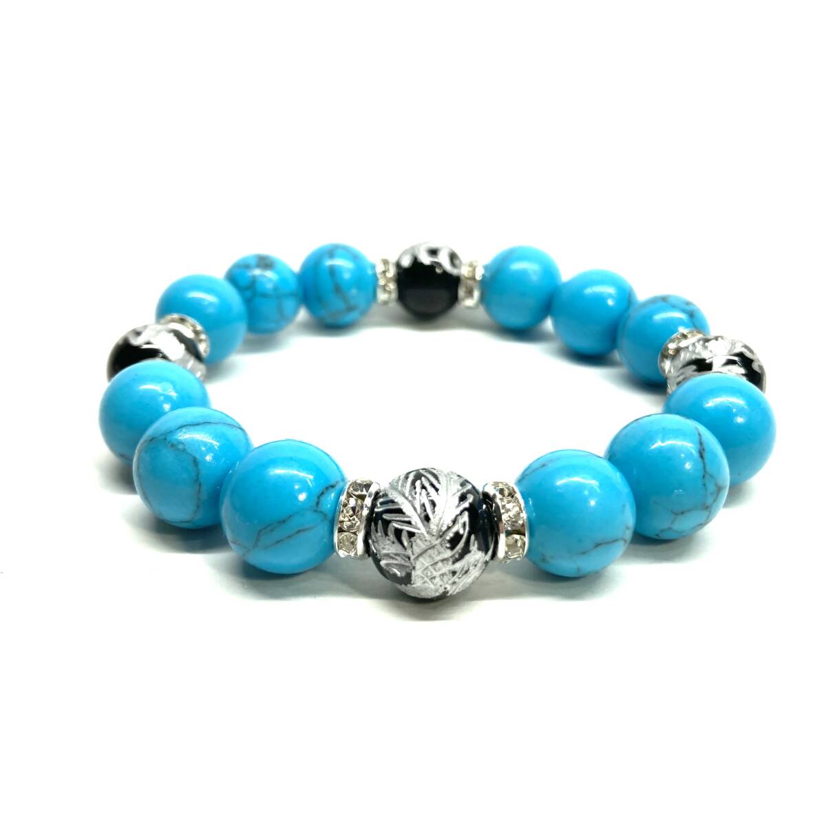 こちらは、四神獣金彫オニキスとターコイズを組み合わせたパワーストーンブレスレットです。四神獣は、中国の伝説で4つの方向(東西南北)を守護する神聖な神。四神獣、厄災から身を守り、多くの運気を呼び込むと言われております。石大きさは程よくインパクトのある12mm玉で内周 約17cmです。 数に限りがございますので気になる方はお早めにどうぞ。