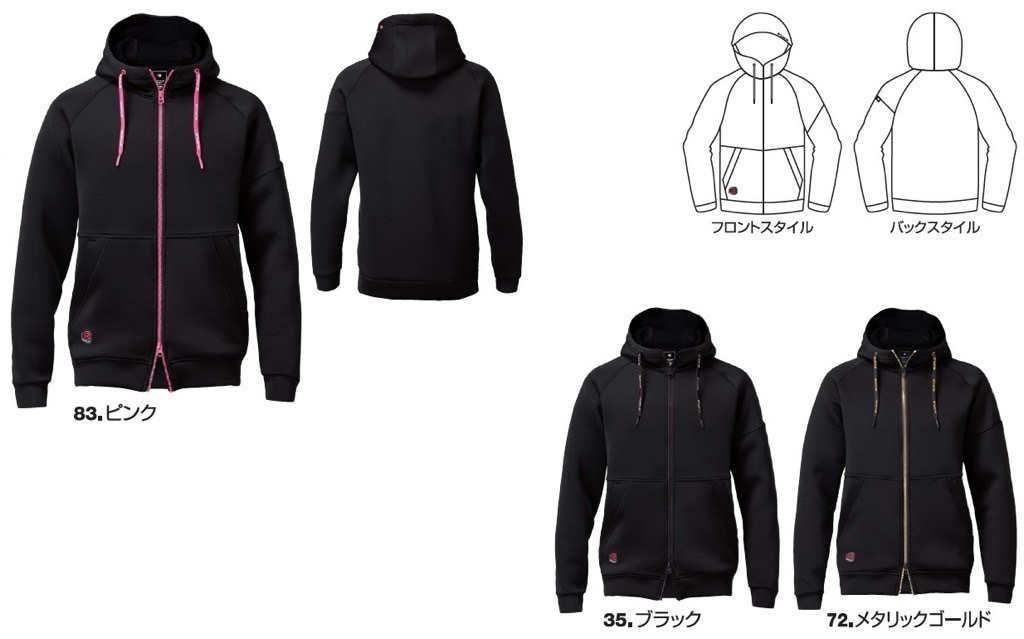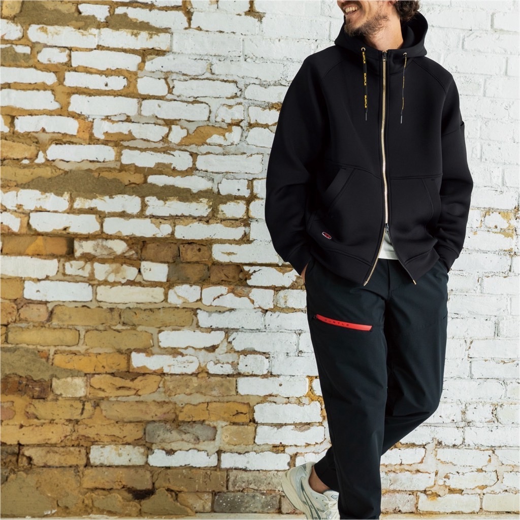 保温性やストレッチ性に優れるダンボールニット素材を使用した キャッチーな付属使いのスポーティウェア着用用途に合わせ3デザインを展開