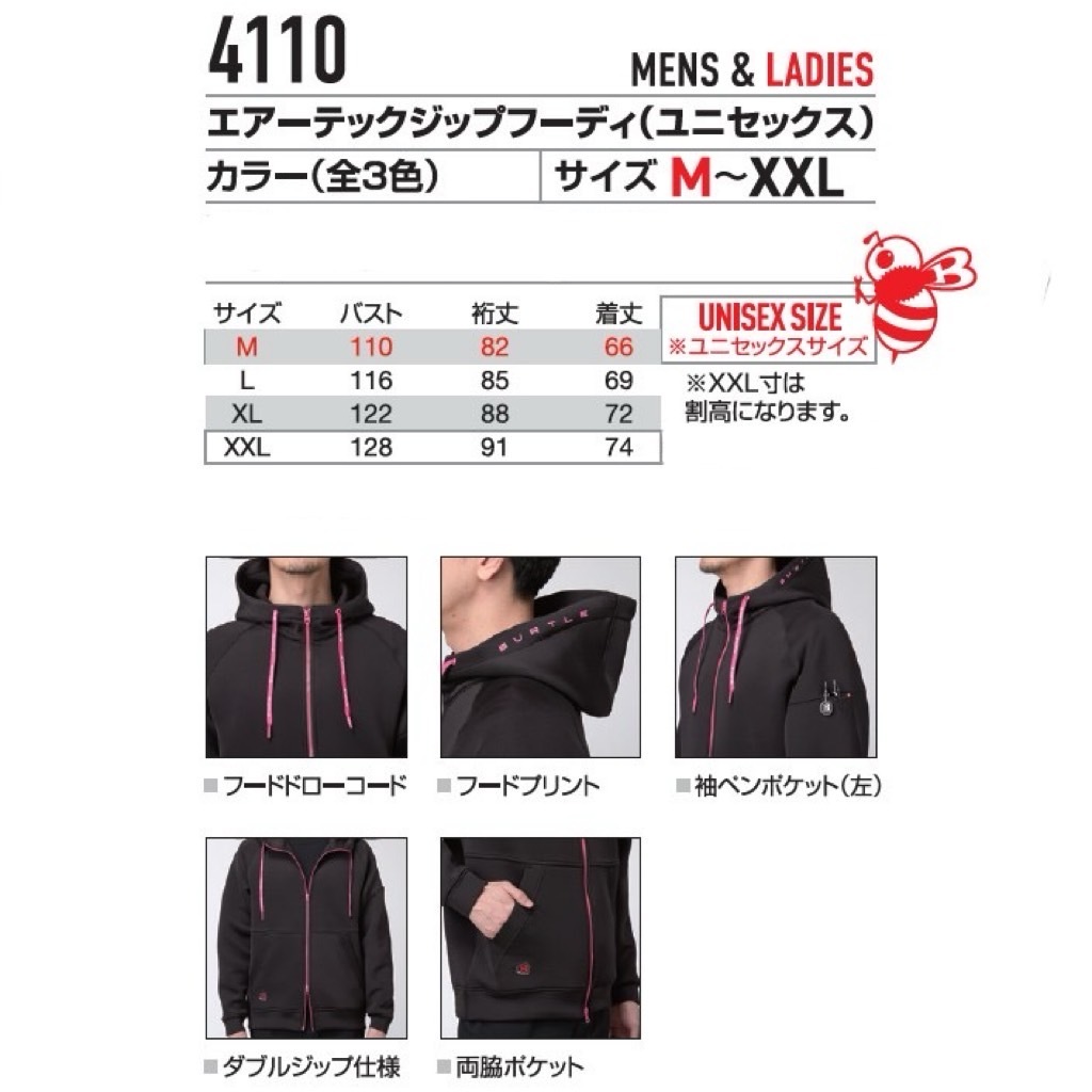 2025 NEW バートル BURTLE 4110 エアーテックジップフーディ