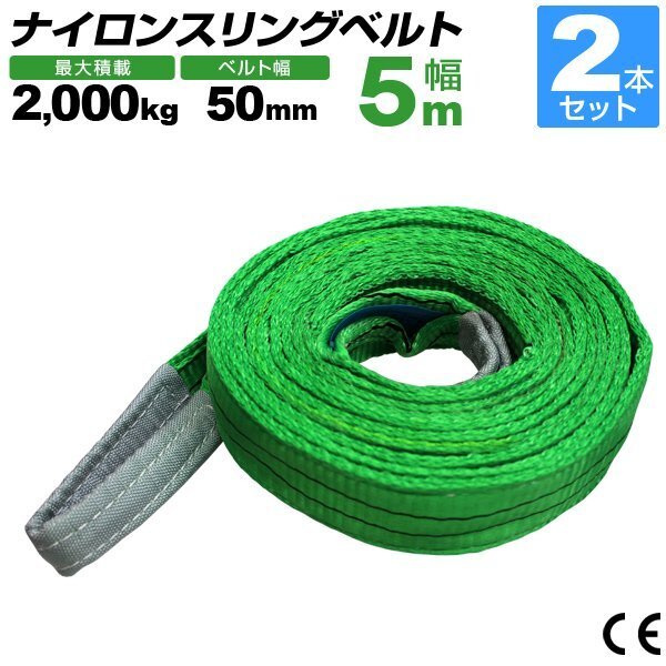 | 【2本セット】スリングベルト 5m 基本使用荷重2000kg(ストレート吊)/ 4000kg(バスケット吊) |