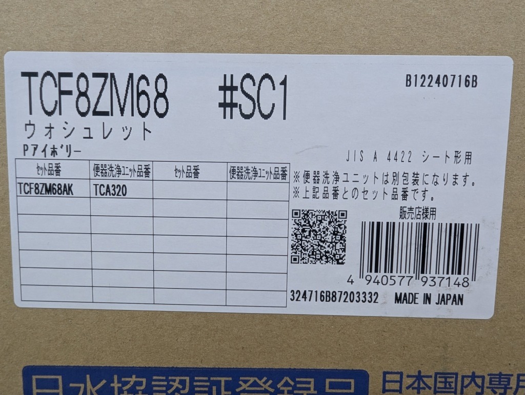 未開封品 TOTO ウォシュレット 温水洗浄便座 TCF8ZM68 #SC1 パステルアイボリー