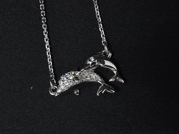 ■極美品■ SWAROVSKI スワロフスキー ラインストーン イルカ ドルフィン ネックレス ペンダント アクセサリー シルバー系 DK8079
