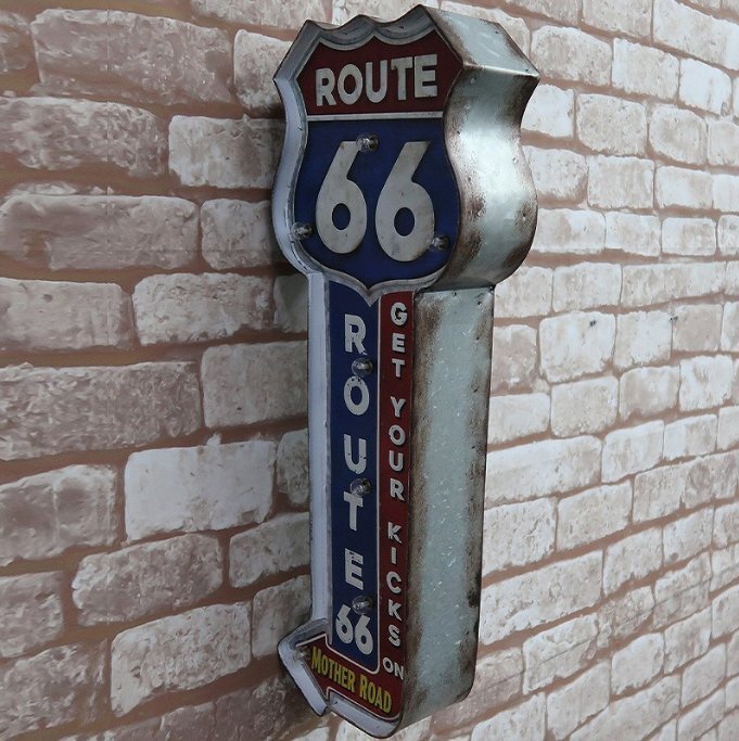 アメリカン雑貨 立体看板 ウォールサイン ブリキ風 アメリカンレトロ アメリカ雑貨 電球付 インテリア ルート66 ROUTE66 BR-37