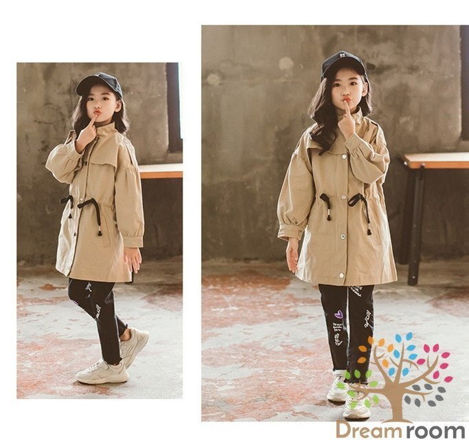 1スタ☆【120cm】スプリングコート ベージュ アウター ジャケット 子供服 女の子 韓国子供服 モッズコート 秋 春物