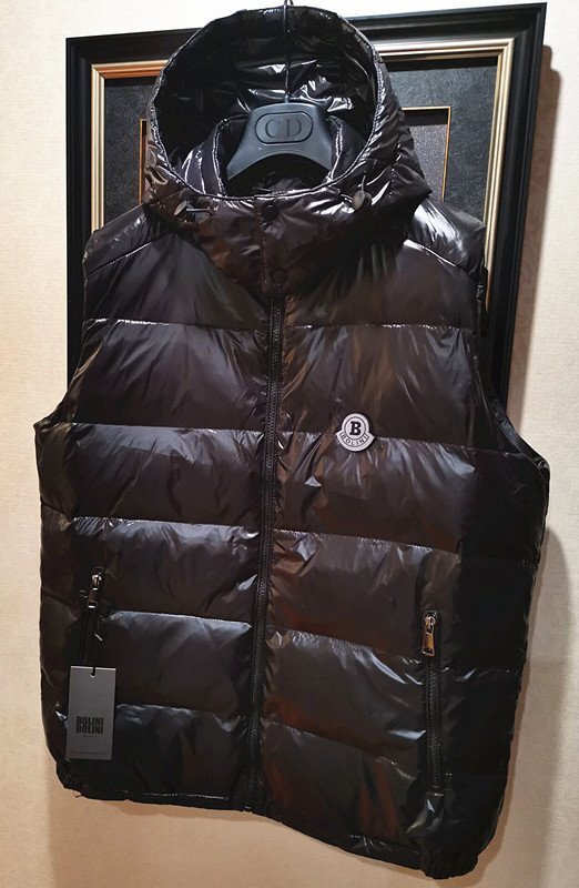 最高級8万※EU製*イタリア・ミラノ発*BOLINI*プレミアムライン※designer・防寒・フード付き*ダウンベスト・イタリア48/Lサイズ・黒