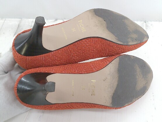 ◇ PICHE ABAHOUSE ピシェ アバハウス アーモンドトゥ ヒール パンプス サイズ34 オレンジ レディース E