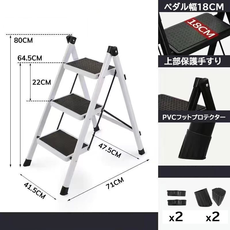 脚立 踏み台 アルミ 折りたたみ 3段 おしゃれ ステップ台 スツール キャタツ はしご 梯子 室内 屋外 ハシゴ コンパクト(ホワイト)551