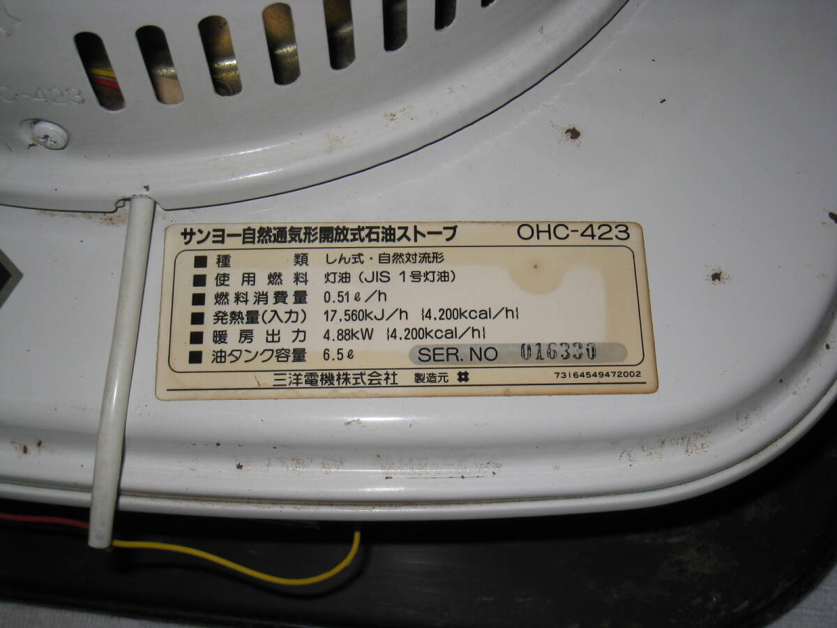 サンヨー 自然通気形 開放式 石油ストーブ 芯式 自然対流型 OHC-423