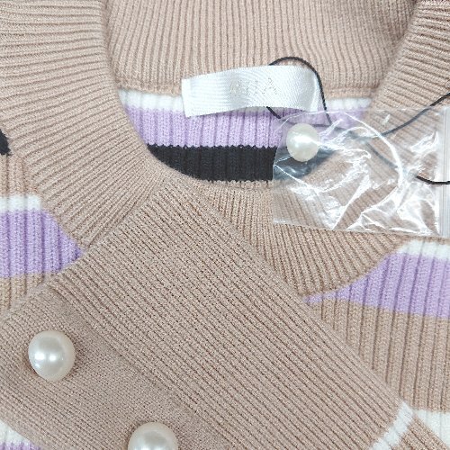 ◇ ◎ MIIA ミーア リブ生地 袖パールボタン ストレッチ 上品 長袖 ロング ワンピース サイズM マルチ レディース E